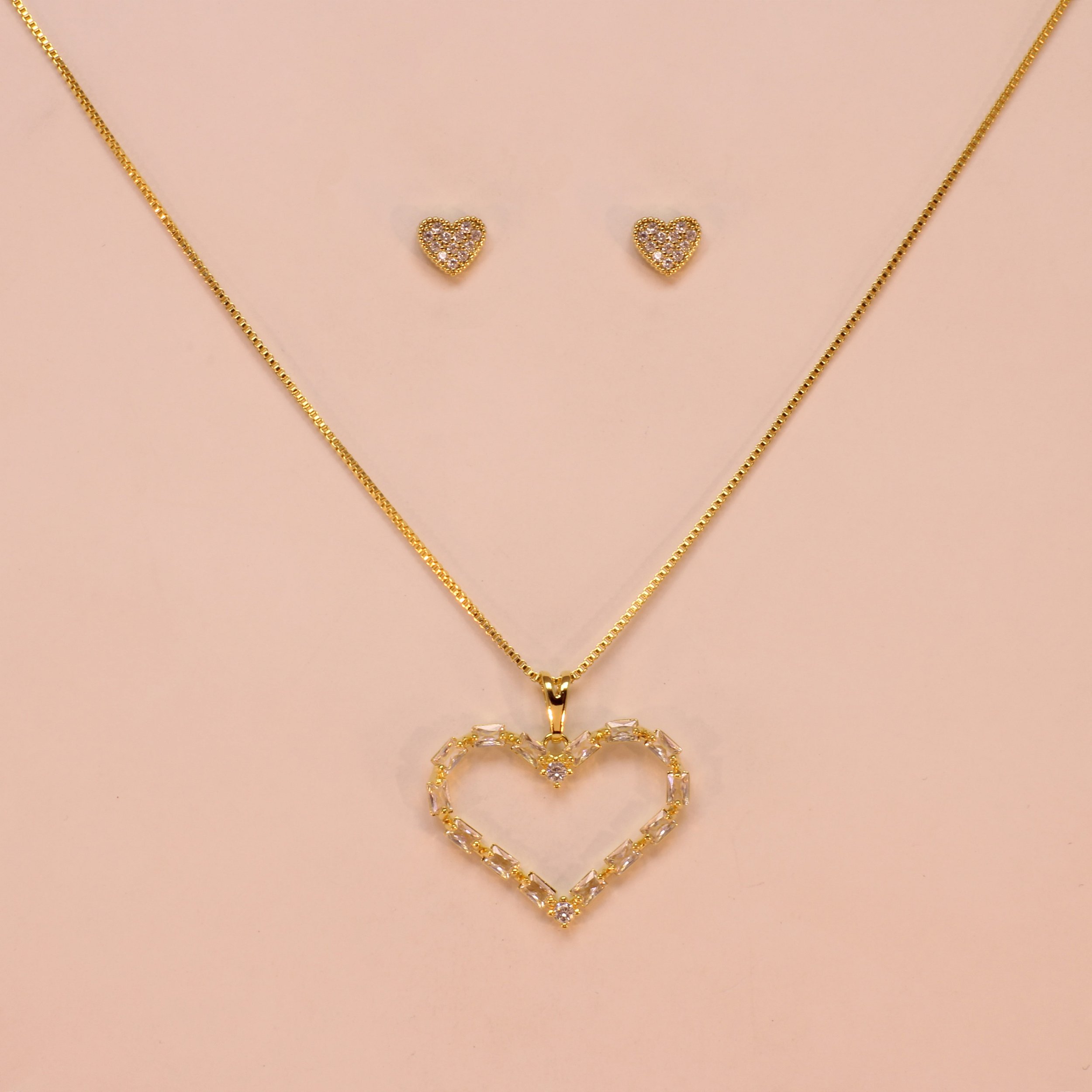 Conjunto Coração Vazado em Zircônia Folheado a Ouro 18k