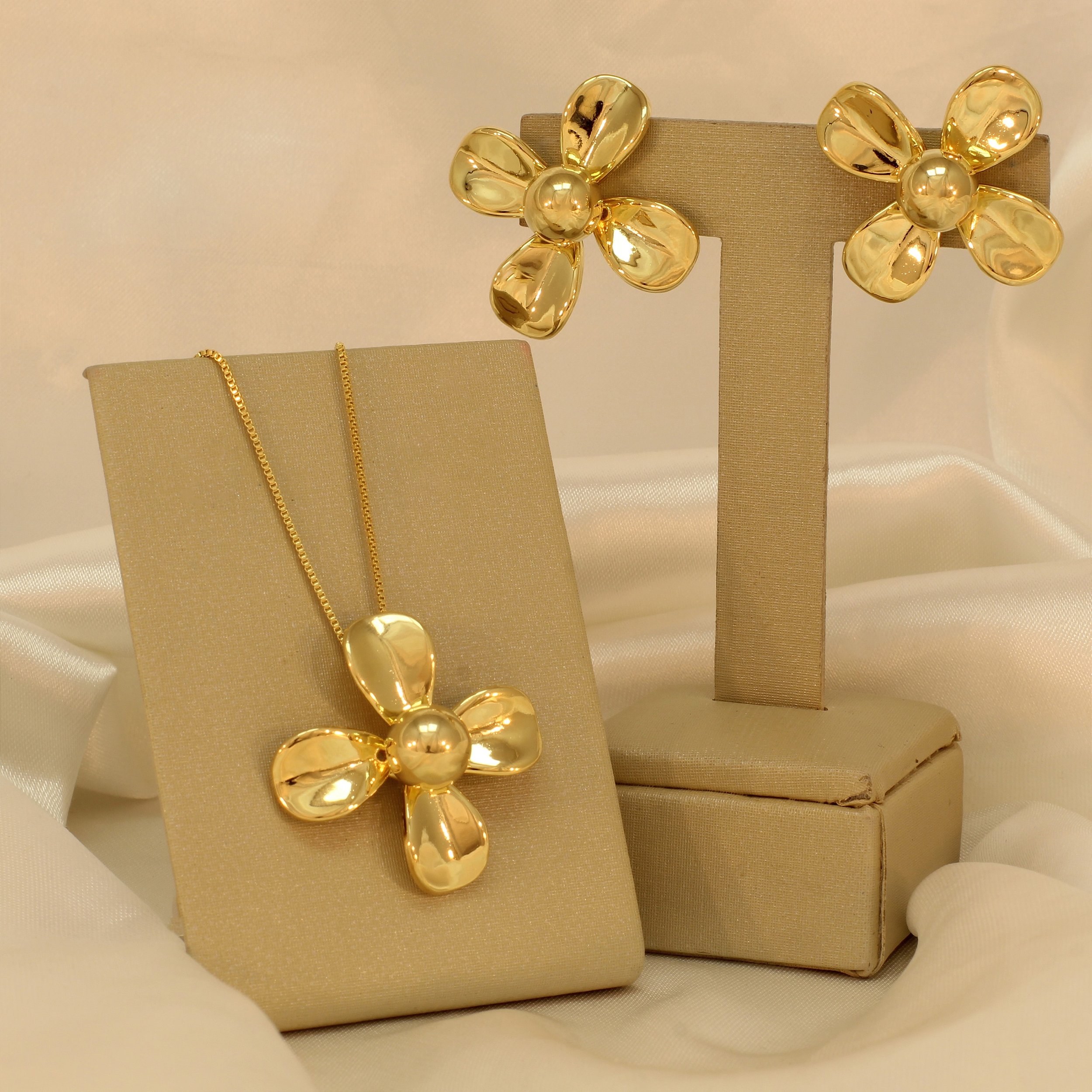 Conjunto de Flor Banhado a Ouro 18k