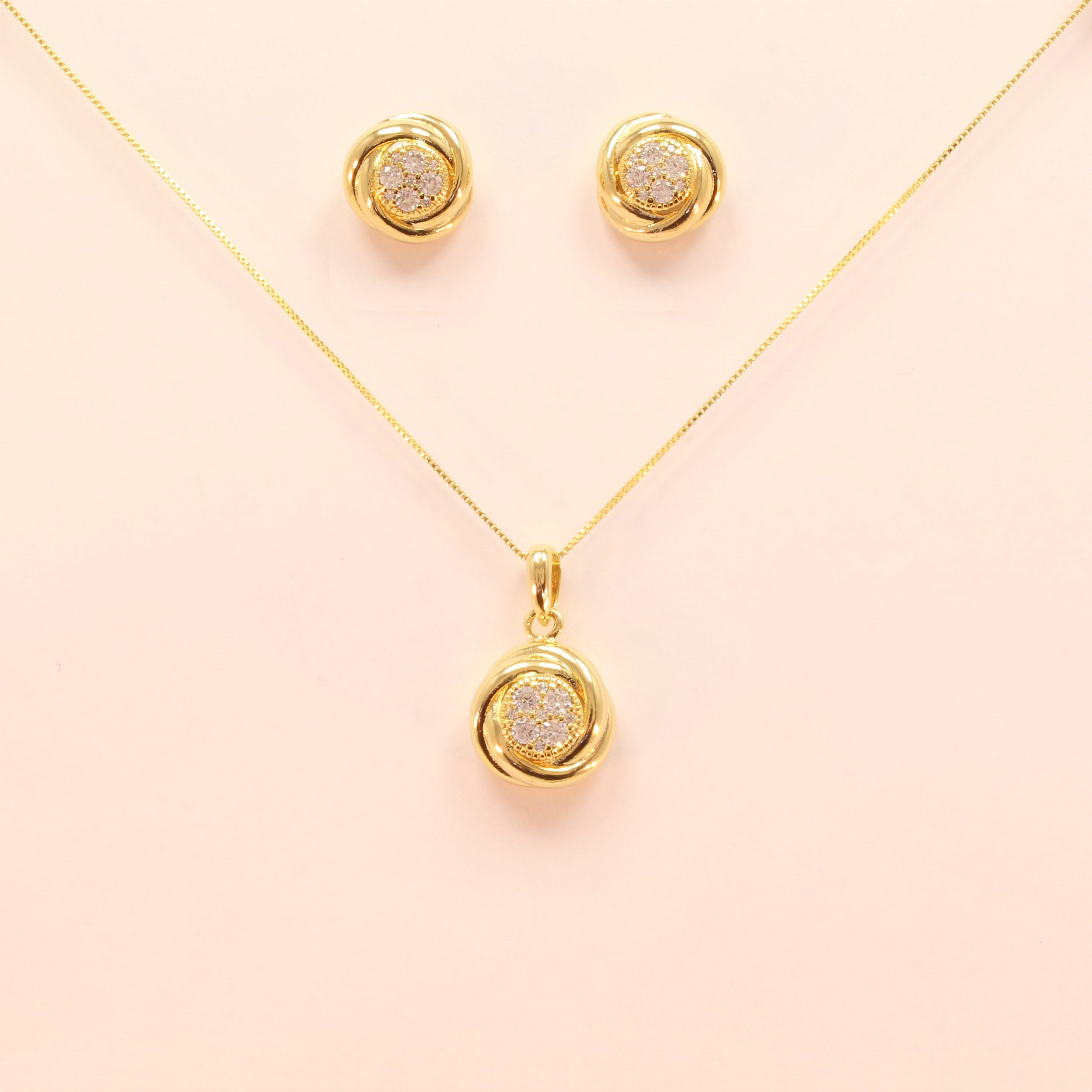 Conjunto com Design em Nó e Detalhe em Zircônia Cristal Folheado a Ouro 18k