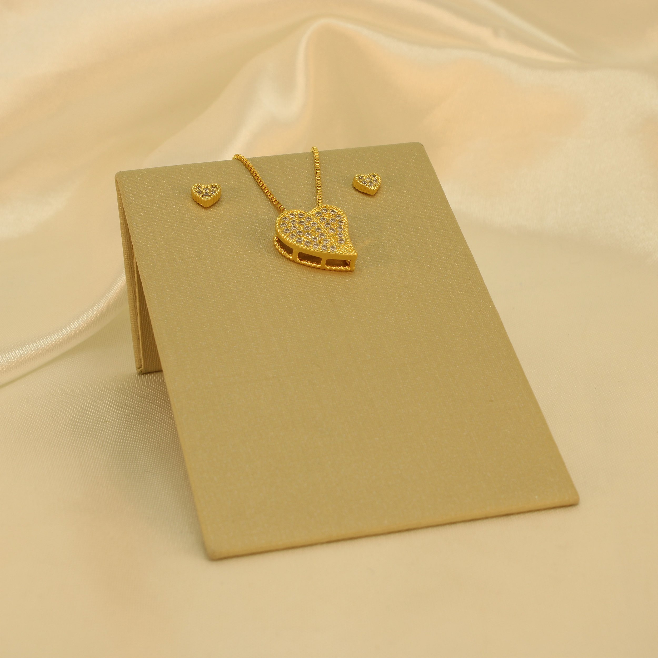 Conjunto de Coração Cravejado em Zircônia Cristal Banhado a Ouro 18k