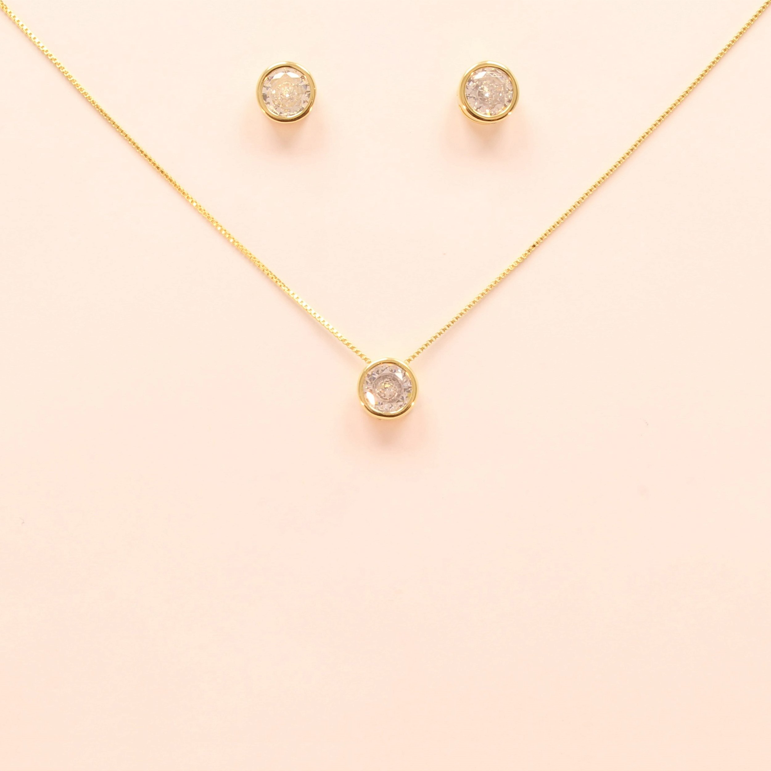 Conjunto Ponto de Luz em Zircônia Cristal Folheado a Ouro 18k