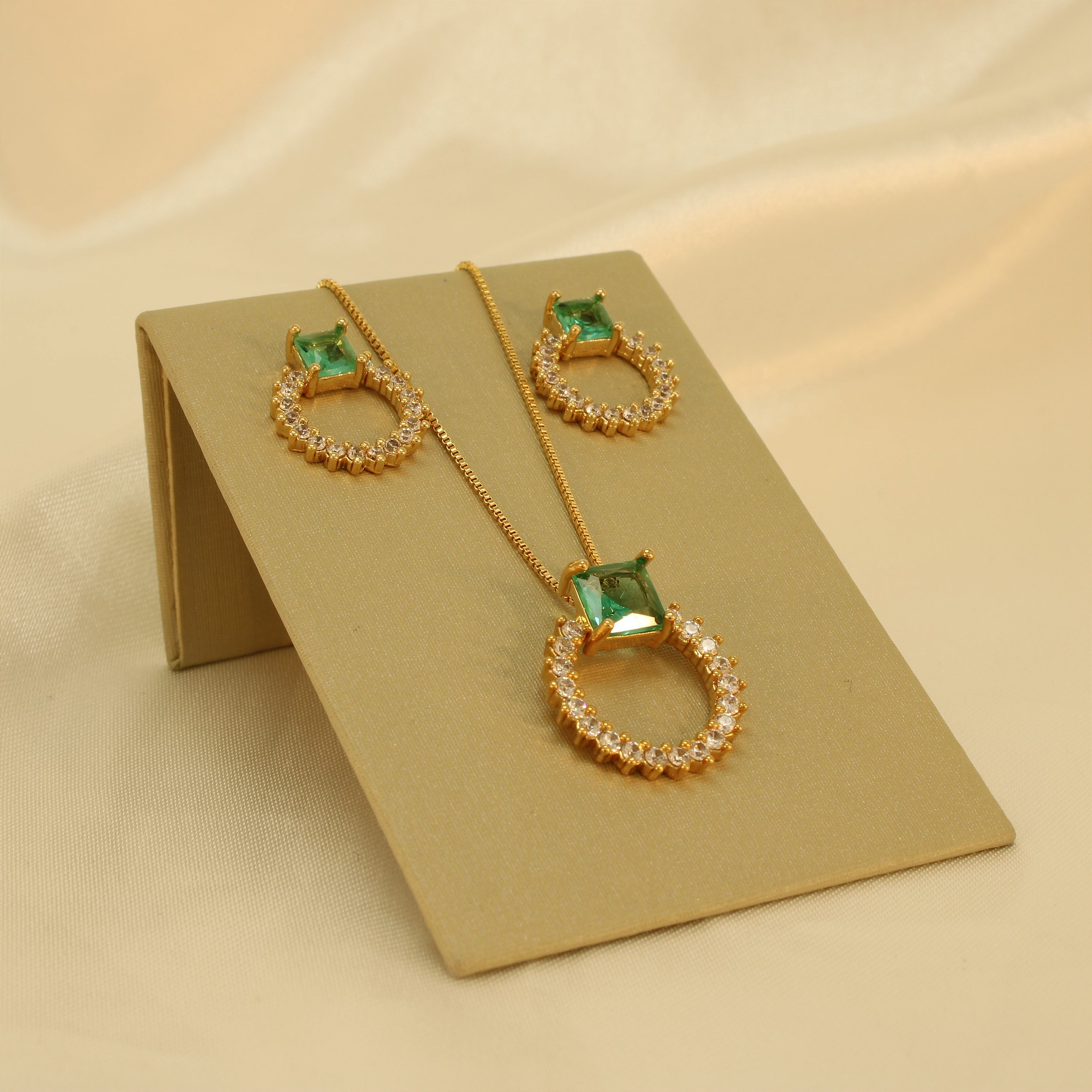 Conjunto Trabalhado em Zircônias Banhado a Ouro 18k