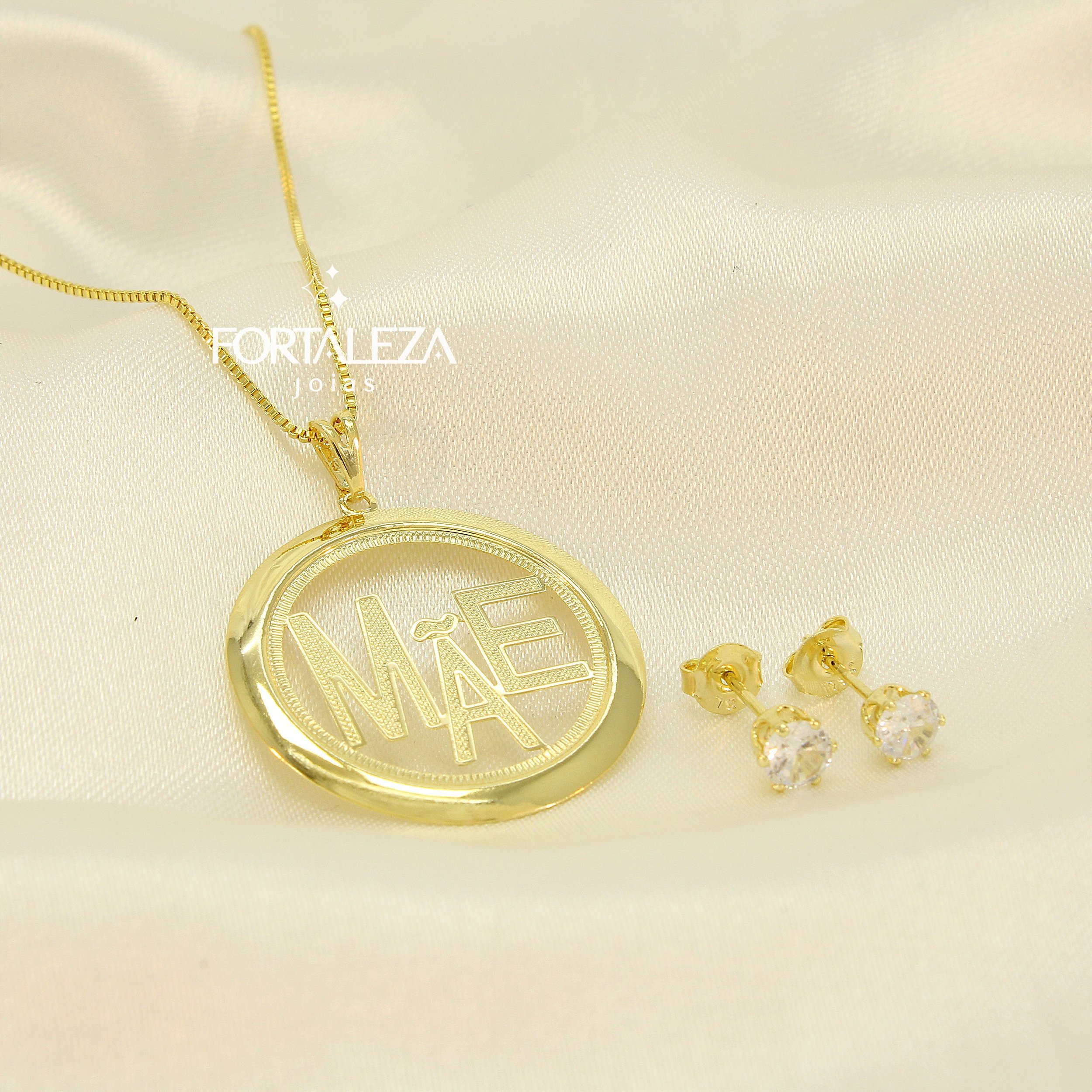 Conjunto Escrito Mãe e Ponto de Luz em Zircônia Cristal Banhado a Ouro 18k