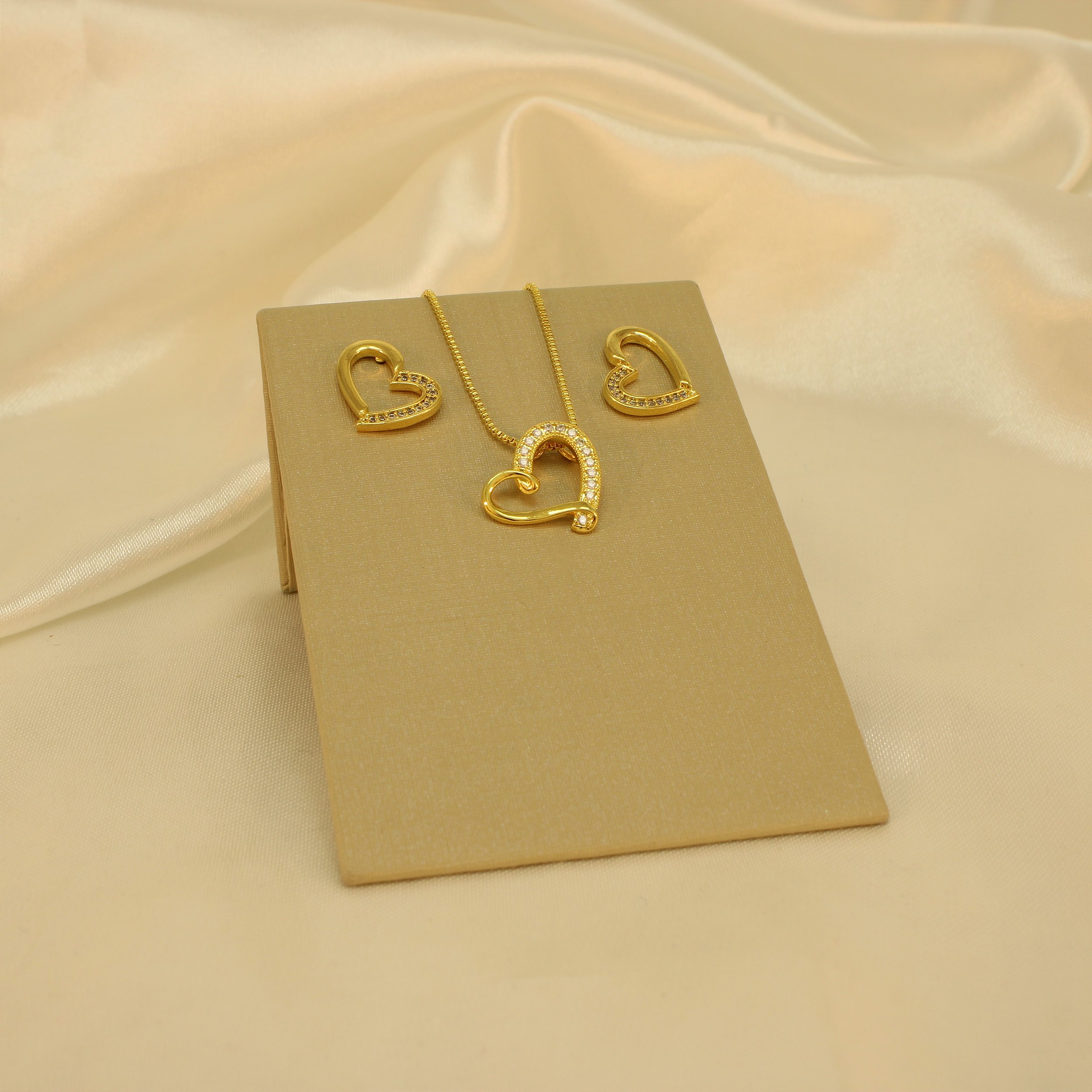 Conjunto Coração com Detalhes em Zircônia Cristal Banhado a Ouro 18k