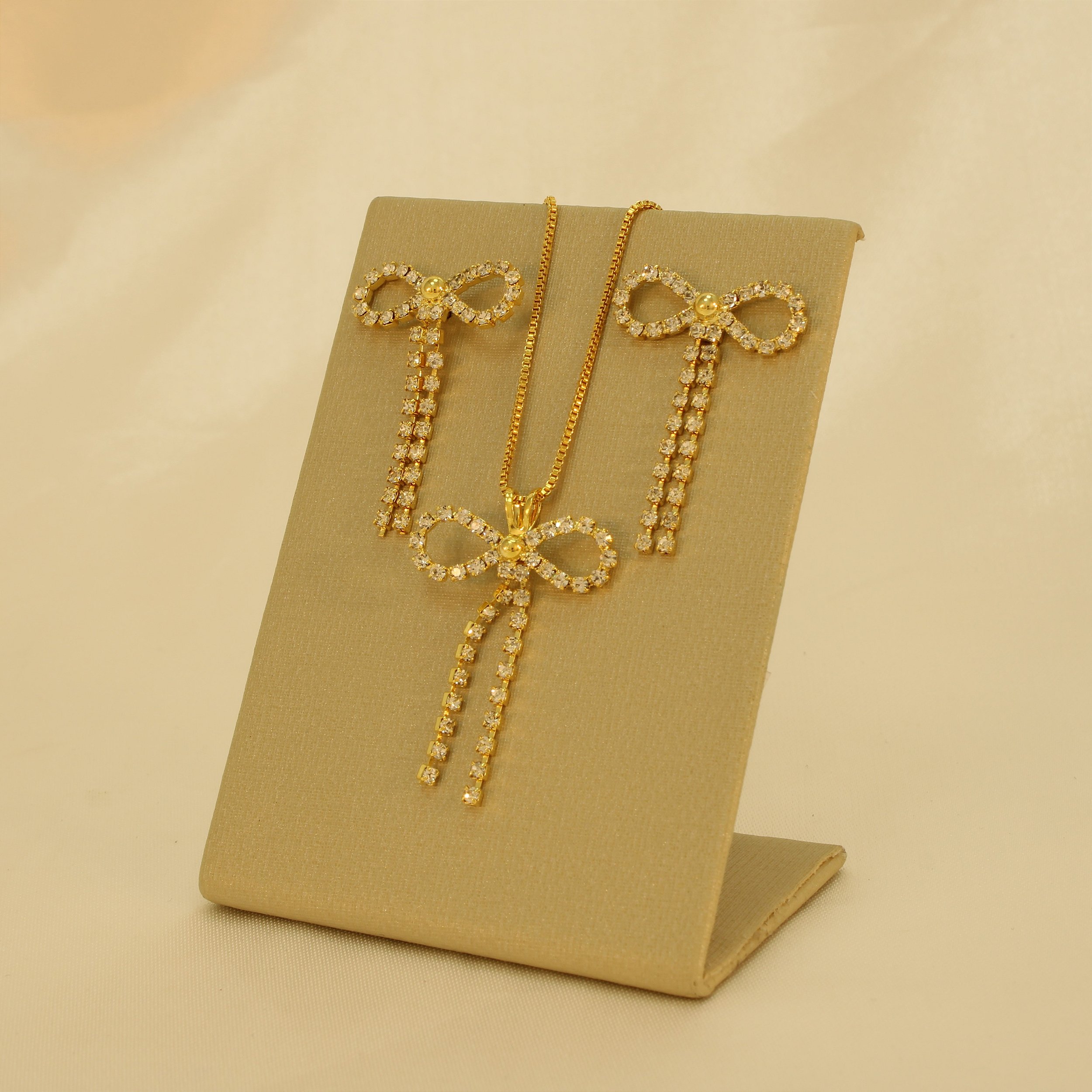 Conjunto de Laço Cravejado em Zircônia Cristal Banhado a Ouro 18k