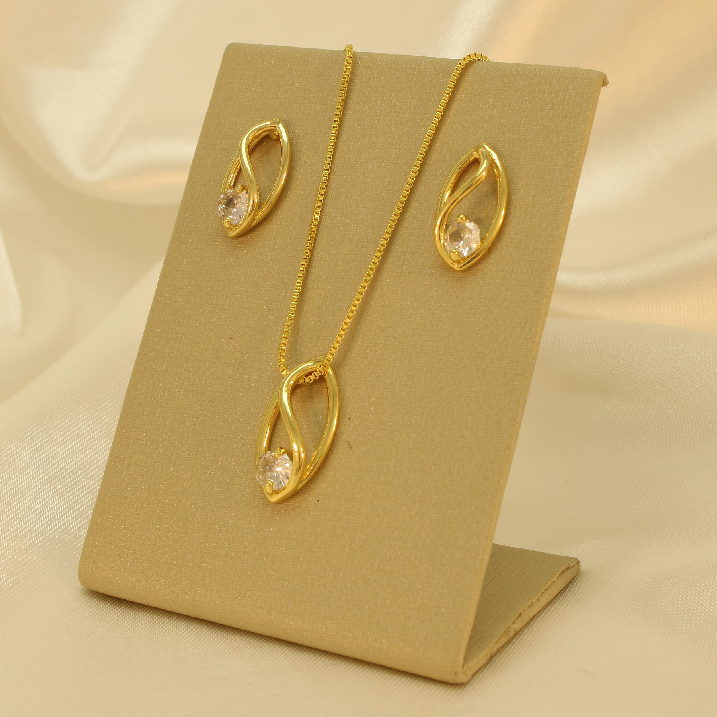 Conjunto Oval com Detalhe em Zircônia Cristal Banhado a Ouro 18k