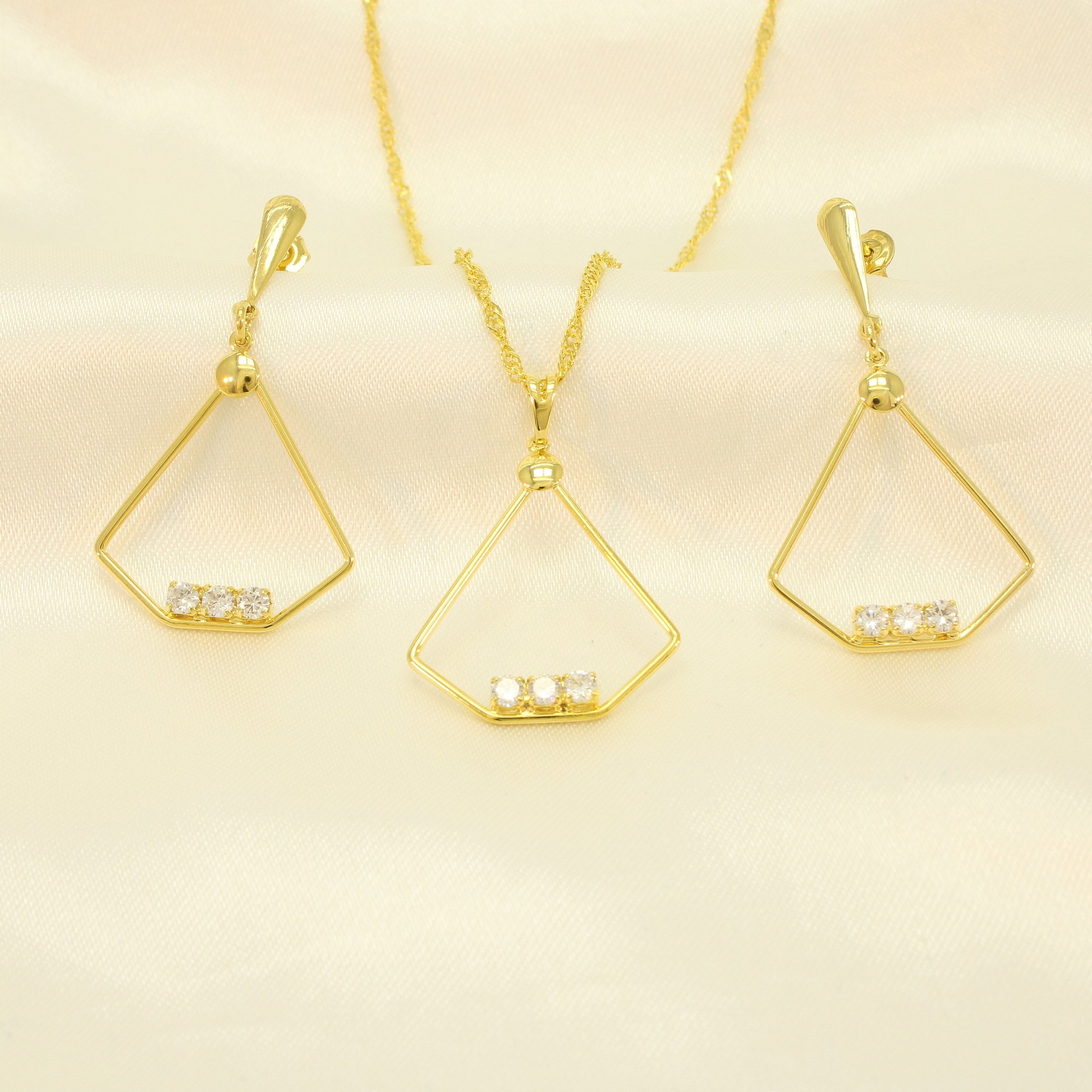 Conjunto Geométrico com Zircônia Cristal Banhado a Ouro 18k
