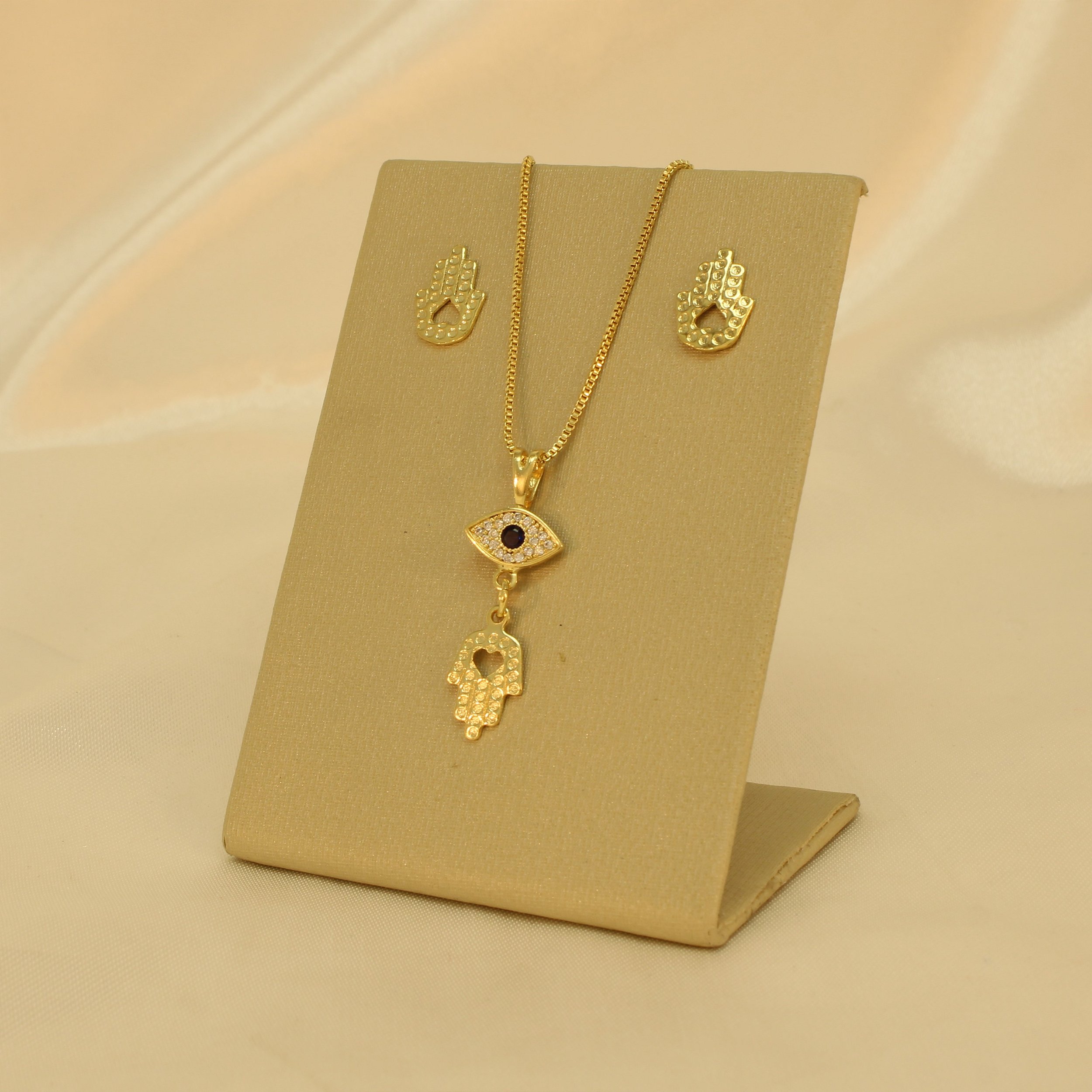 Conjunto Mão de Fátima e Olho Grego Banhado a Ouro 18k