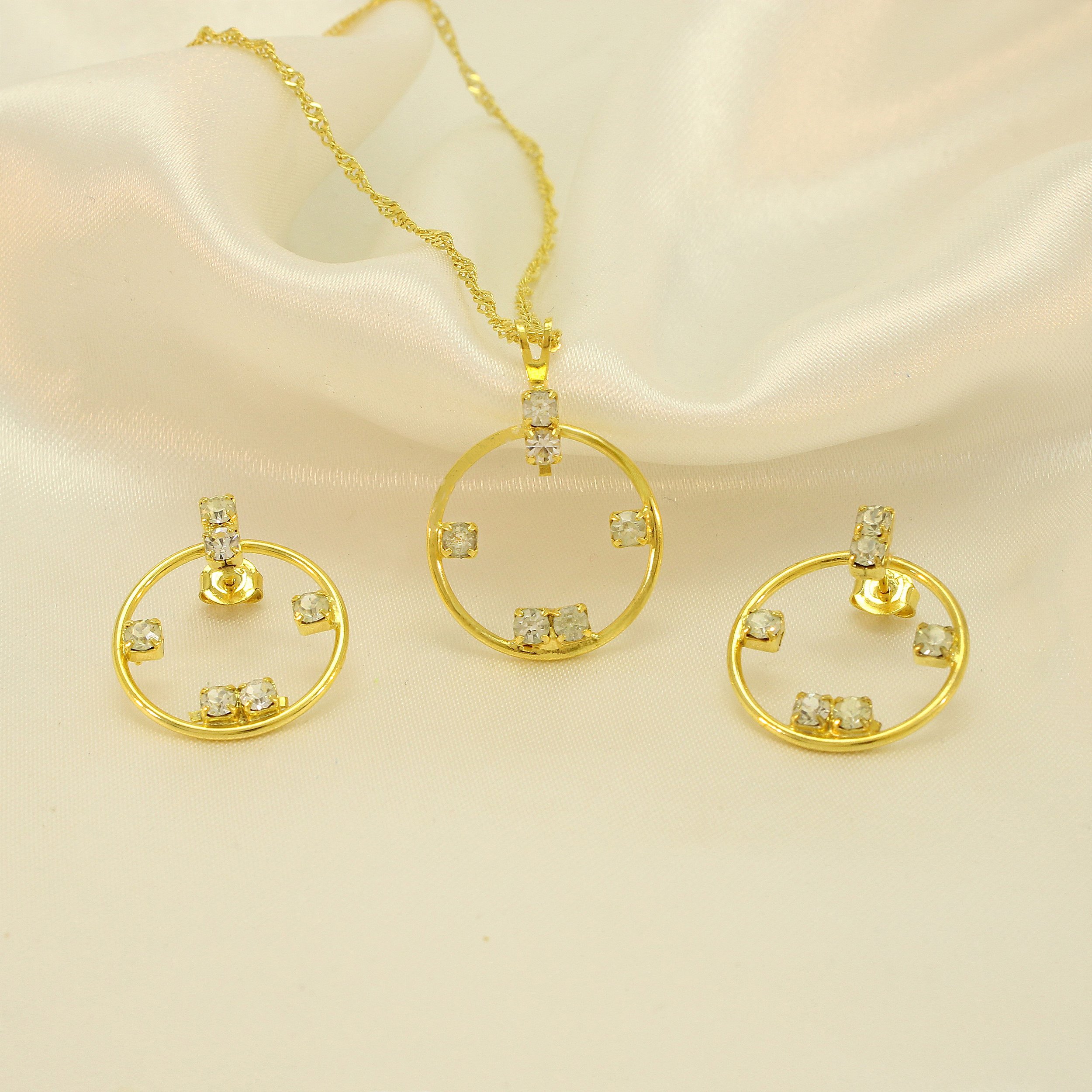 Conjunto com Detalhes em Zircônia Cristal Banhado a Ouro 18k