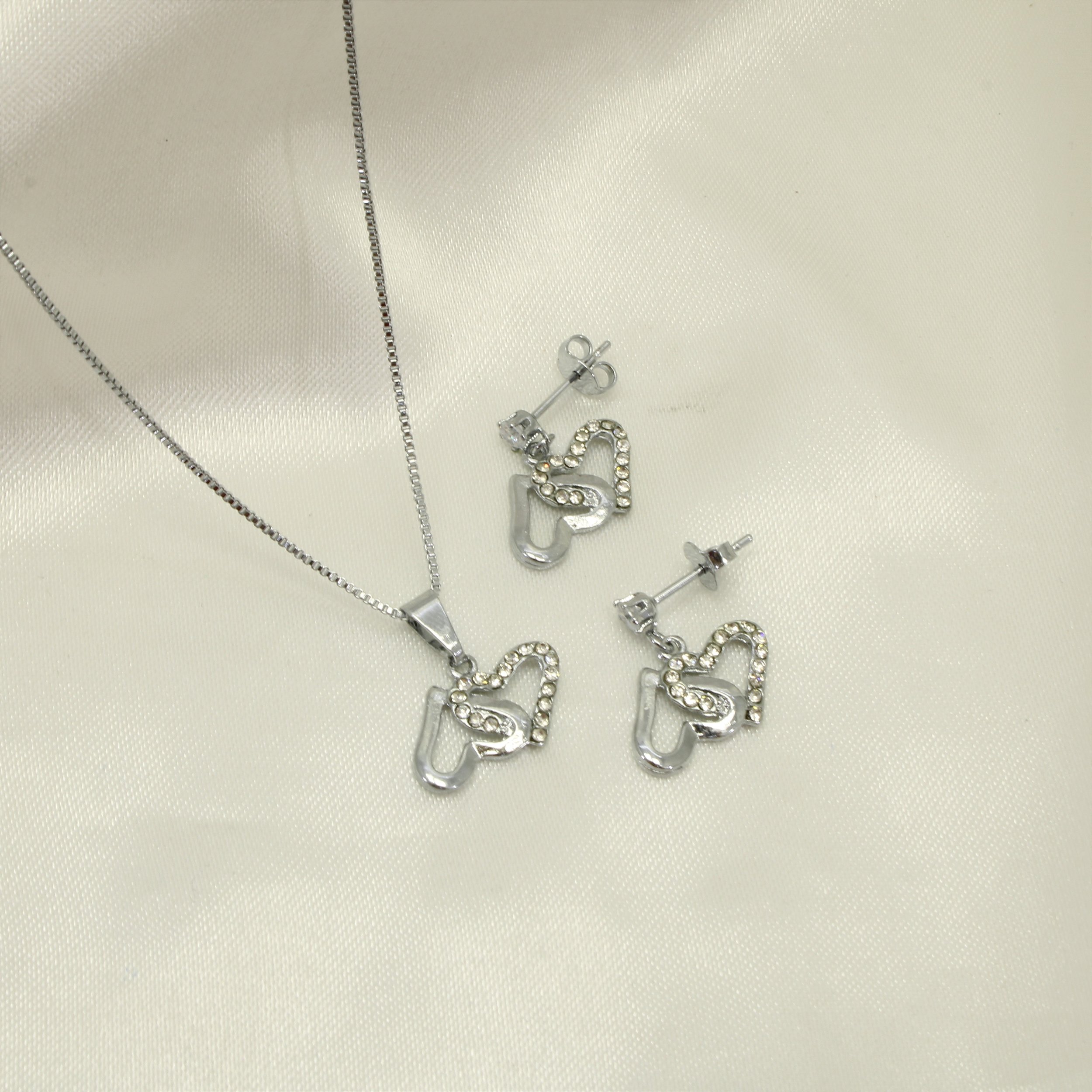 Conjunto de Corações Entrelaçados com Detalhe em Zircônia Cristal Banhado a Ouro Branco