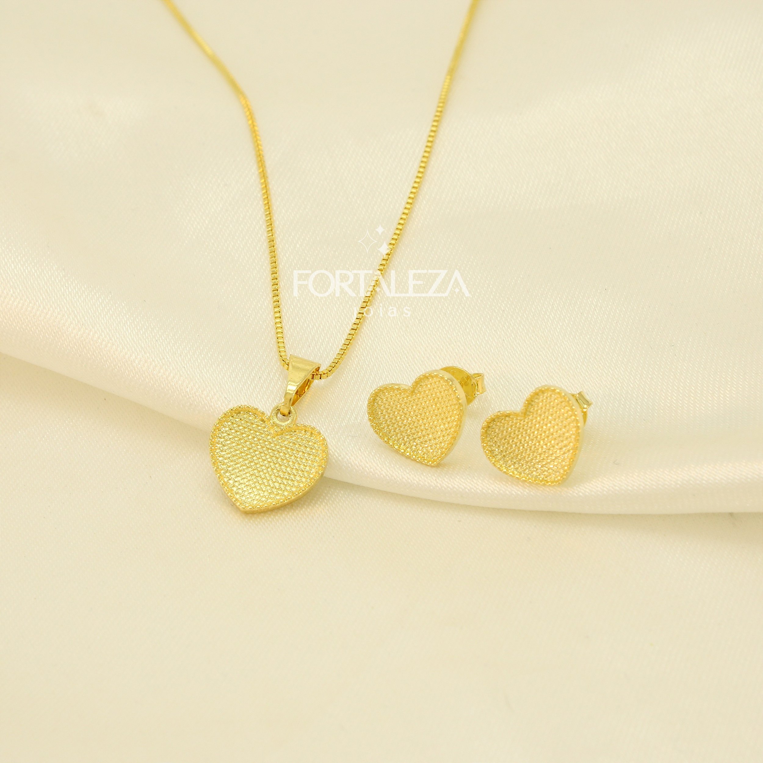 Conjunto de Coração Texturizado Banhado a Ouro 18k
