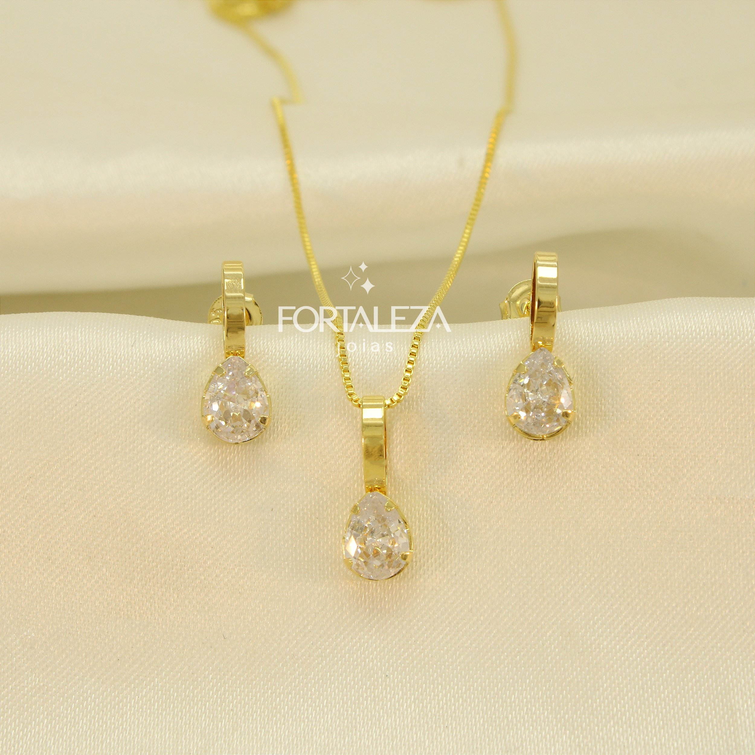 Conjunto de Gota com Zircônia Cristal Banhado a Ouro 18k