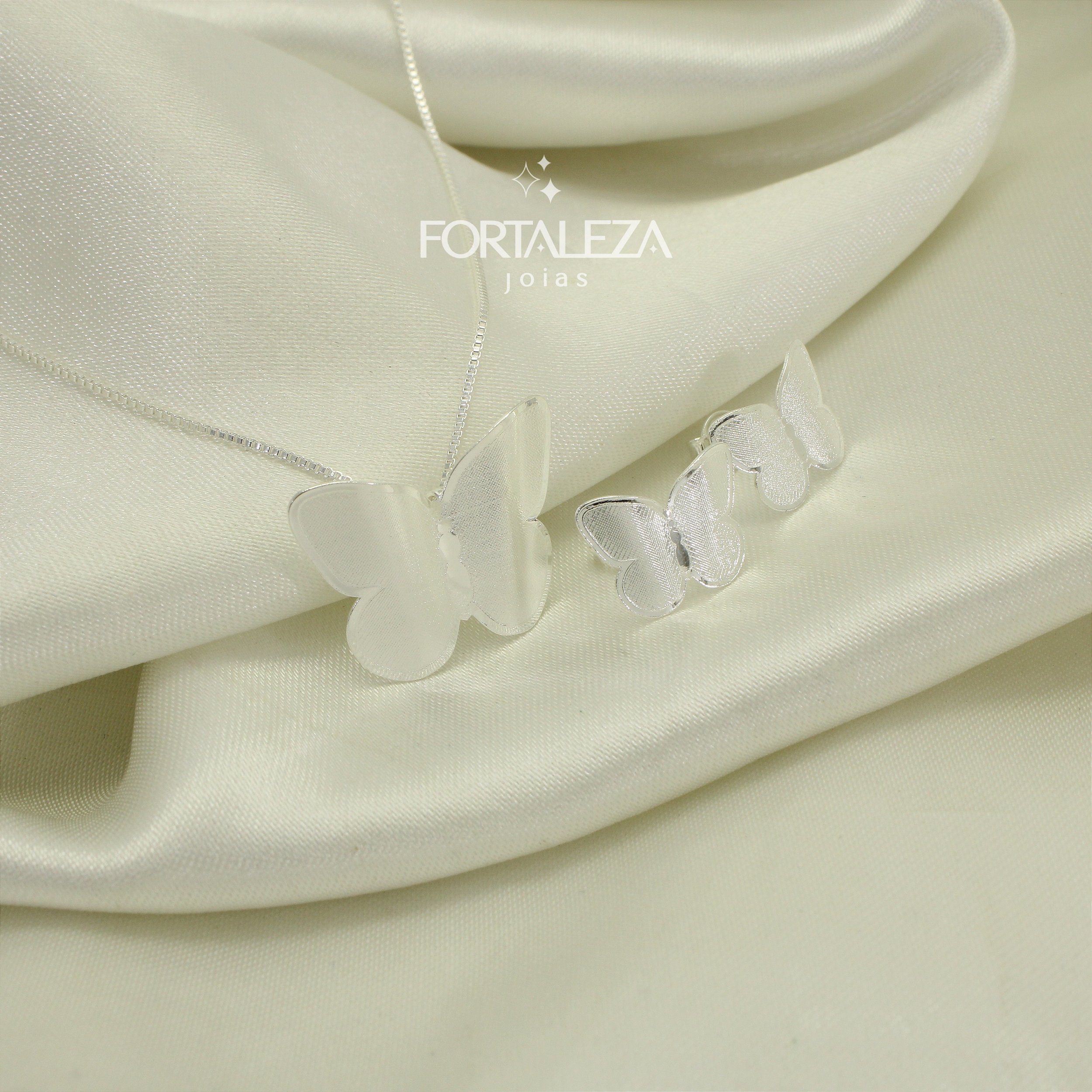Conjunto de Borboleta com Acabamento Fosco Banhado a Prata