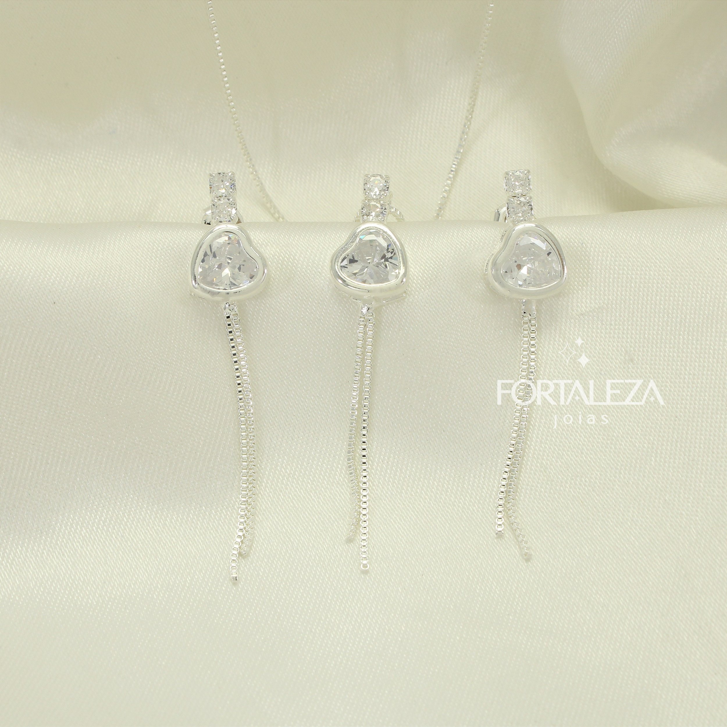 Conjunto de Coração com Zircônia Cristal Banhado a Prata