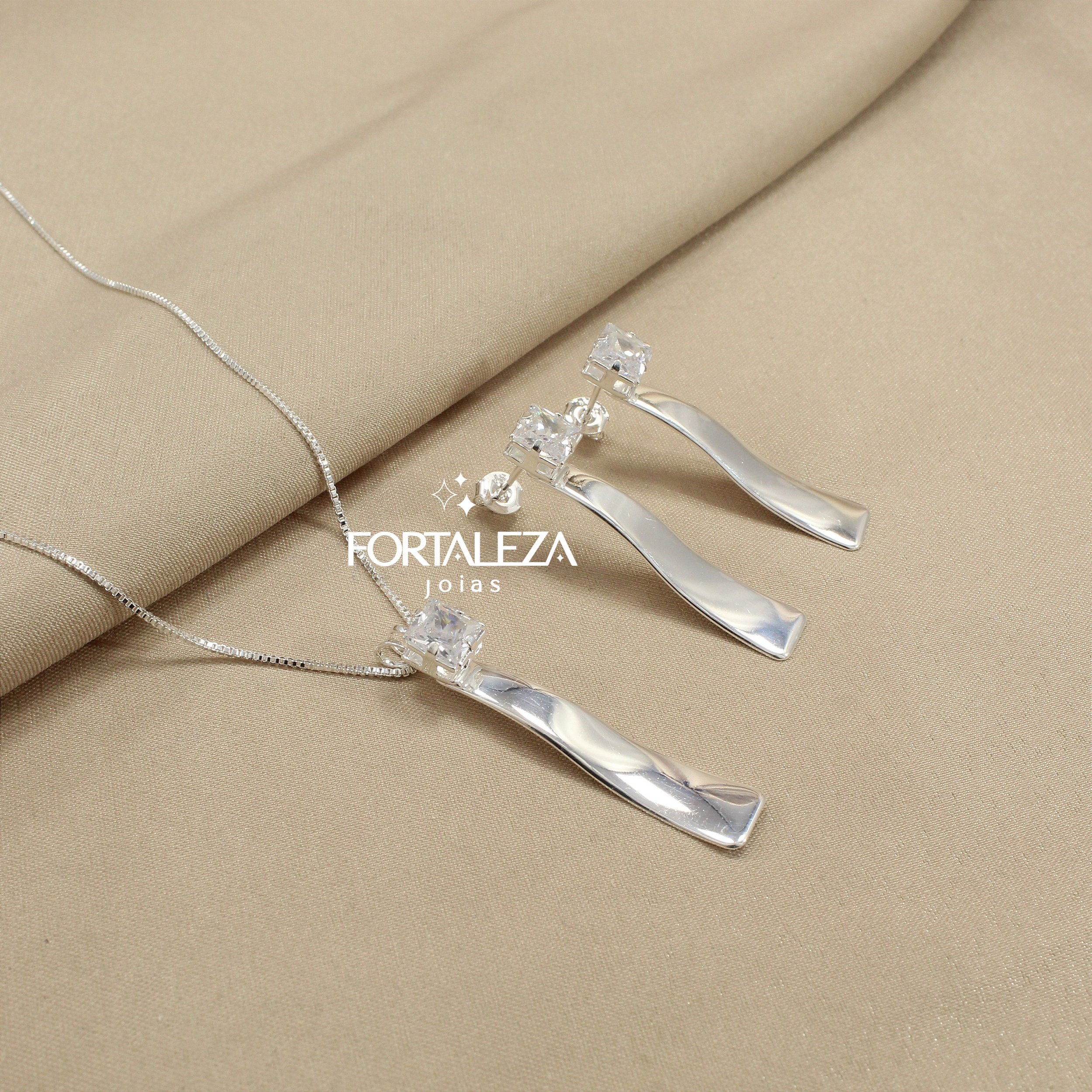 Conjunto com Design Ondulado com Zircônia Cristal Banhado a Prata