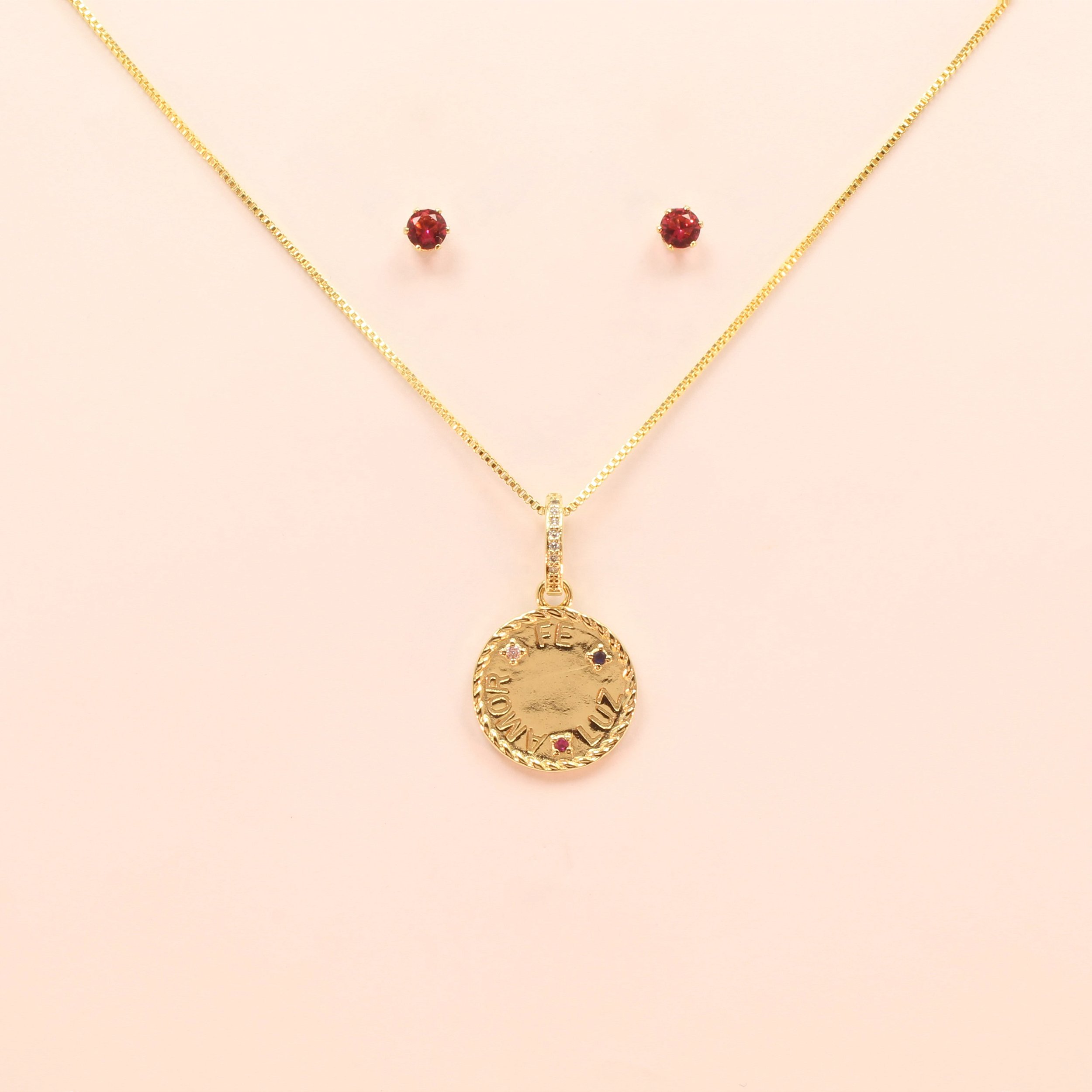 Conjunto Escrito Amor, Fé e Luz Folheado a Ouro 18k