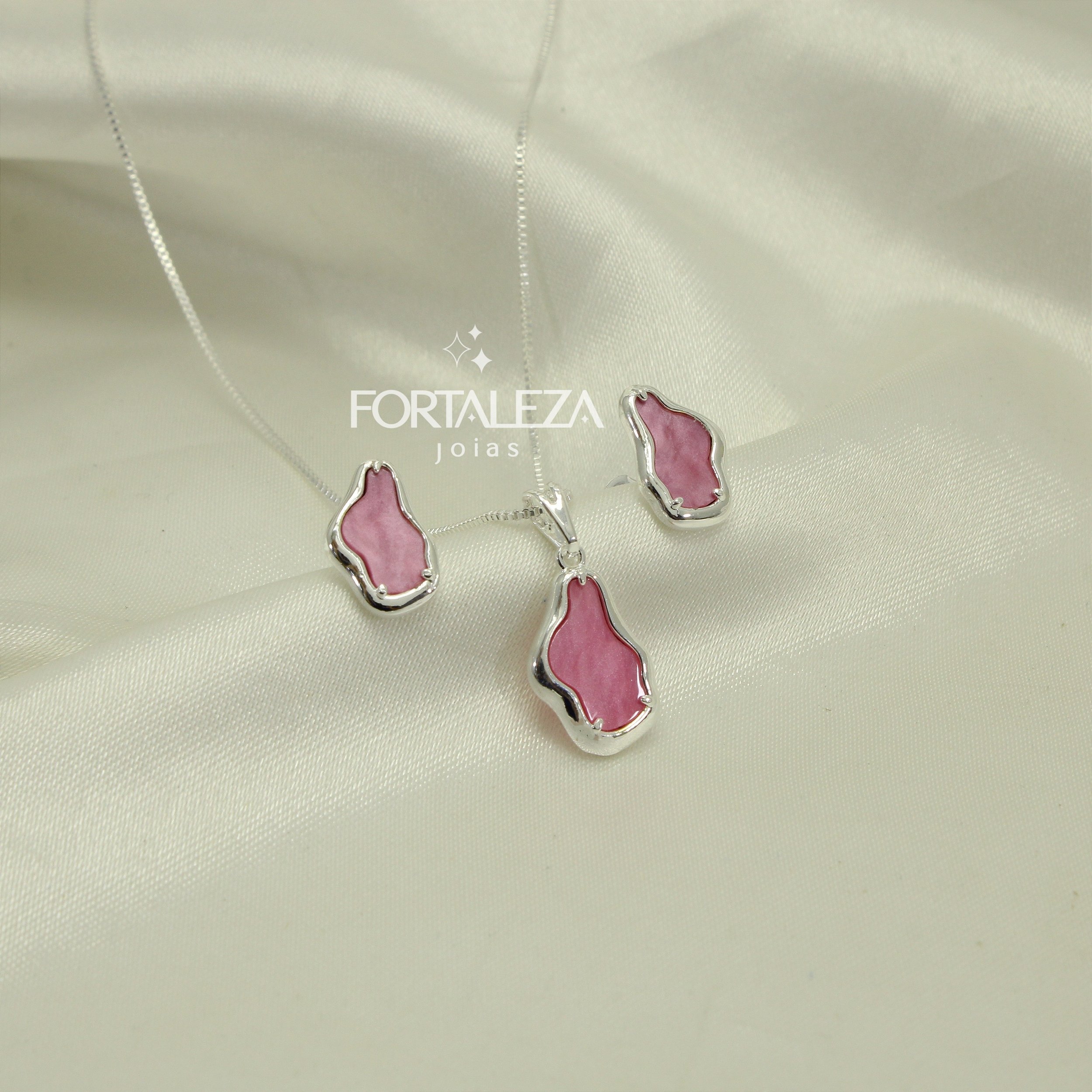Conjunto Orgânico com Resina Banhado a Prata
