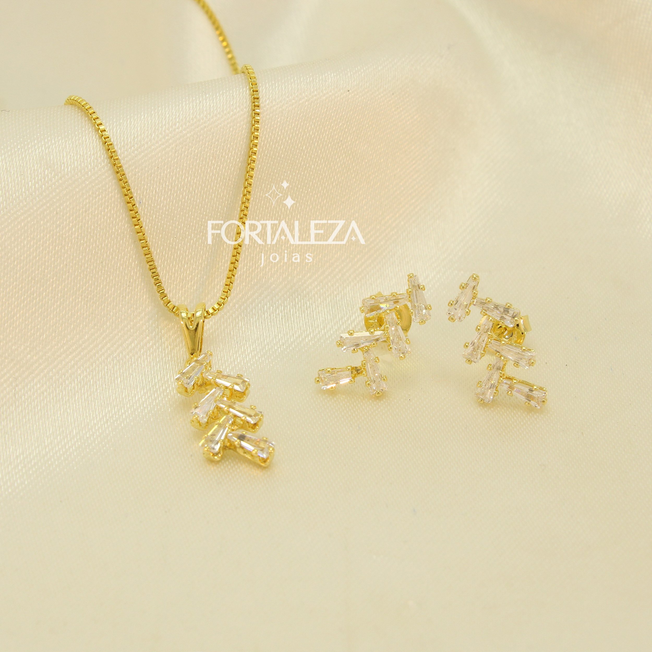 Conjunto com Detalhes em Zircônia Cristal Banhado a Ouro 18k