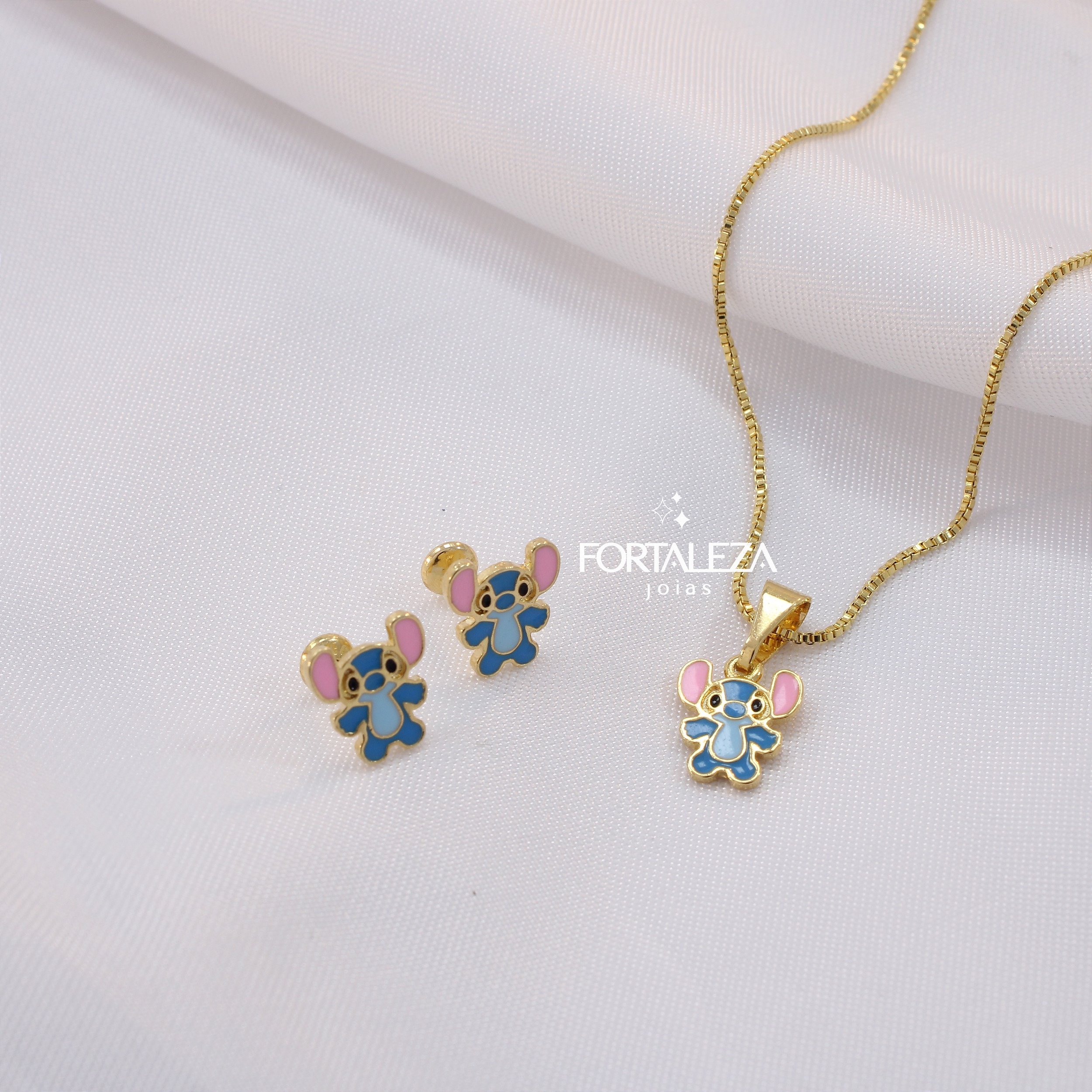Conjunto do Stitch Resinado e Banhado a Ouro 18k