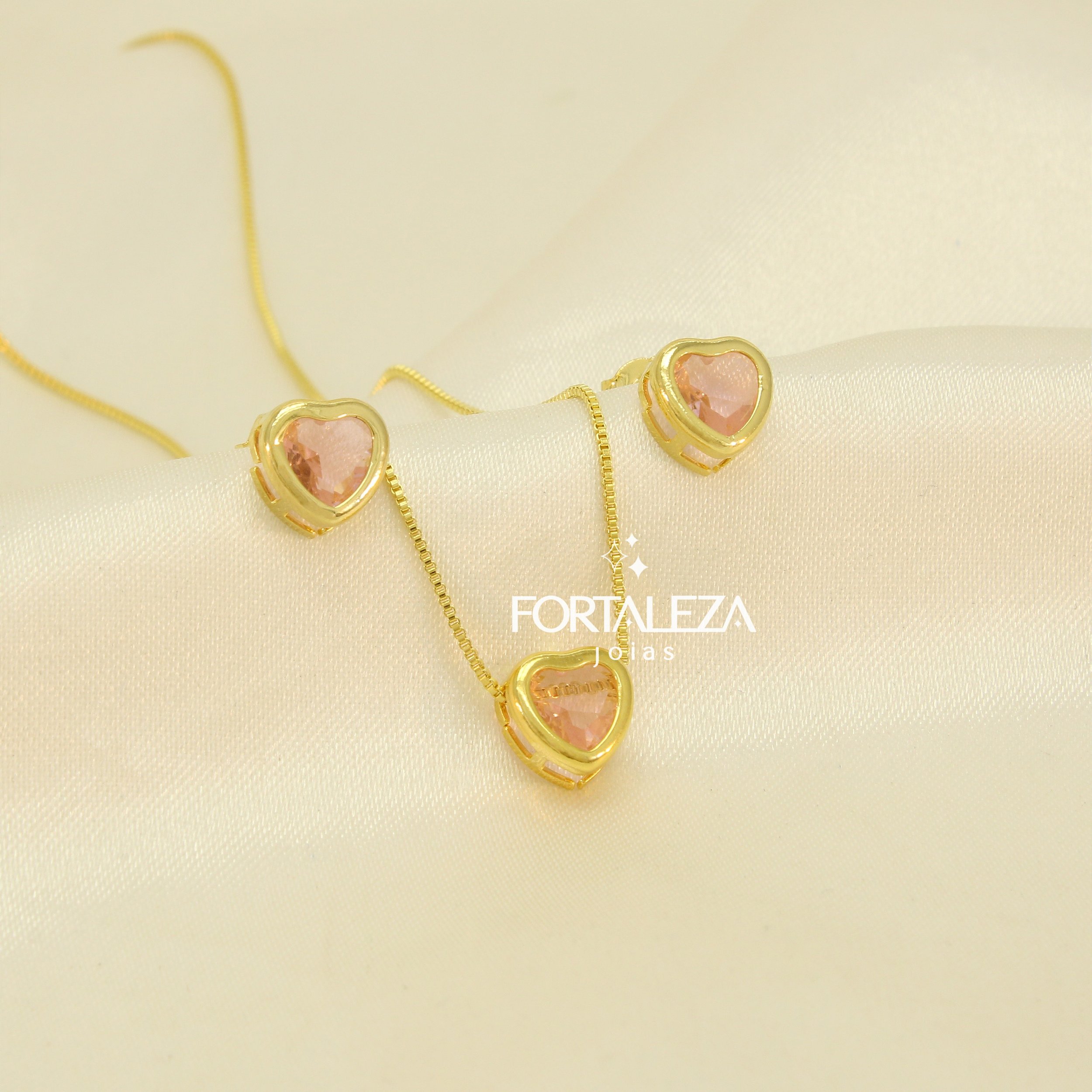 Conjunto de Ciração com Zircônia Turmalina Rosa Banhado a Ouro 18k