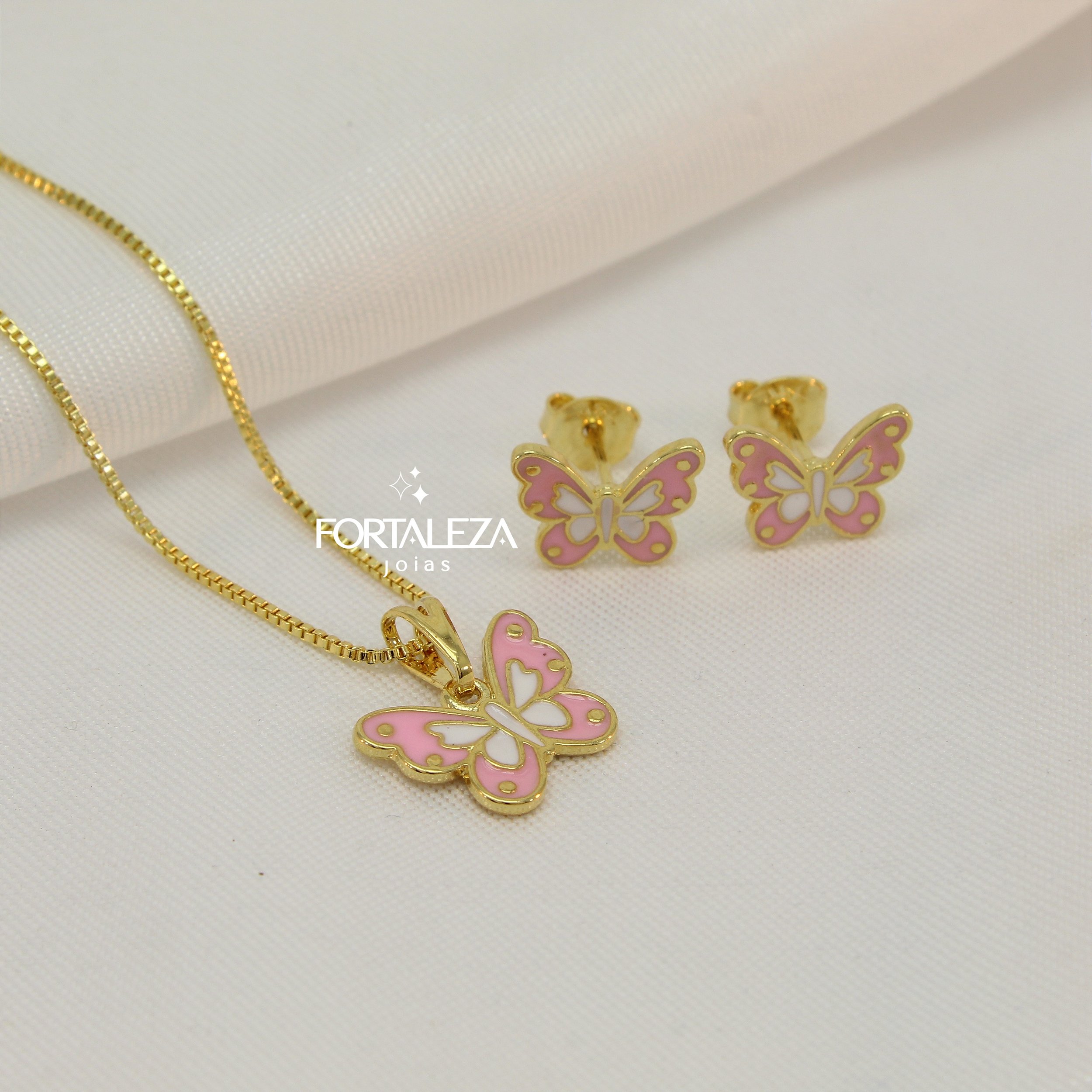 Conjunto Borboleta Resinada Banhado a Ouro 18k