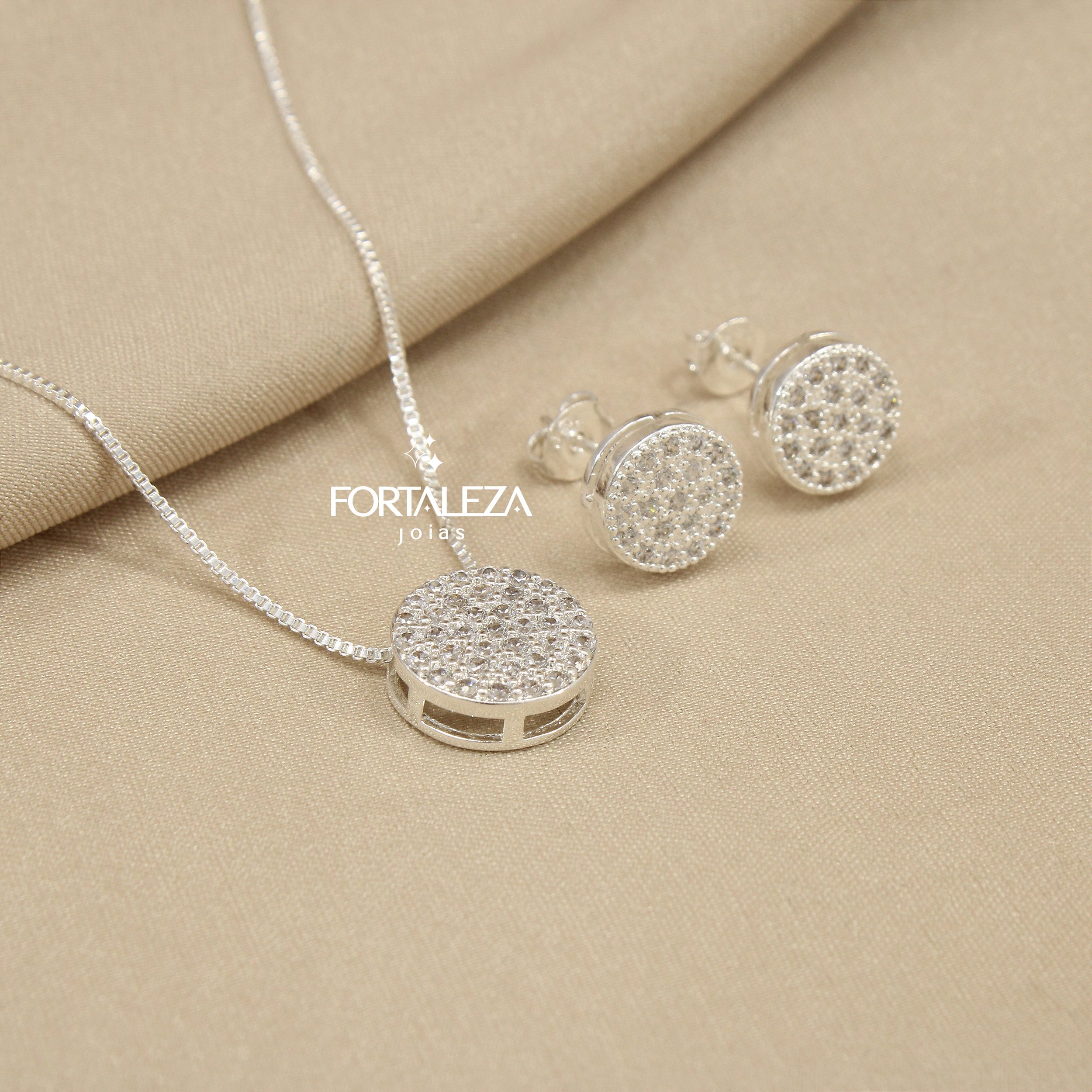 Conjunto Cravejado em Zircônia Cristal Banhado a Prata