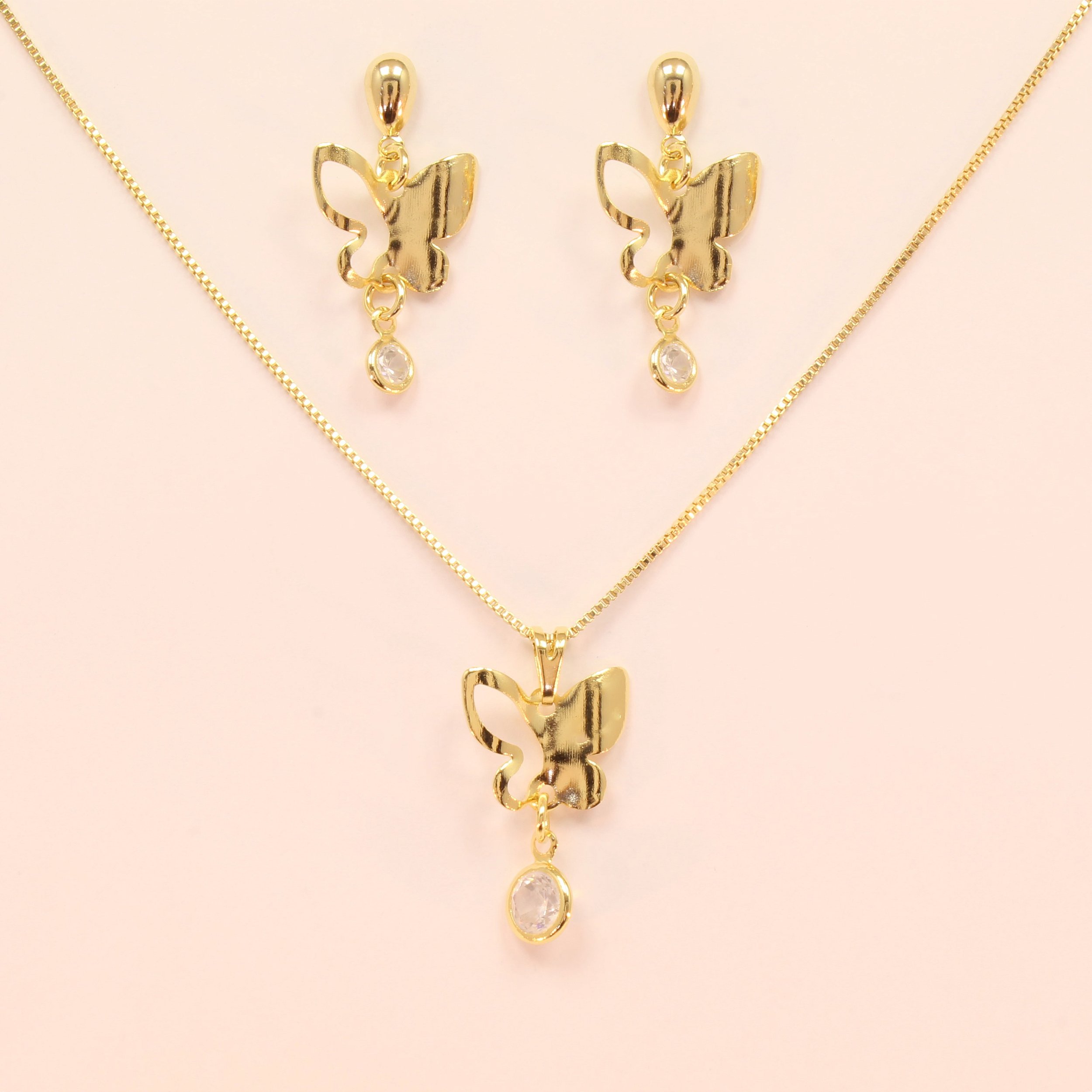 Conjunto Borboleta Escrito Nice Folheado a Ouro 18k