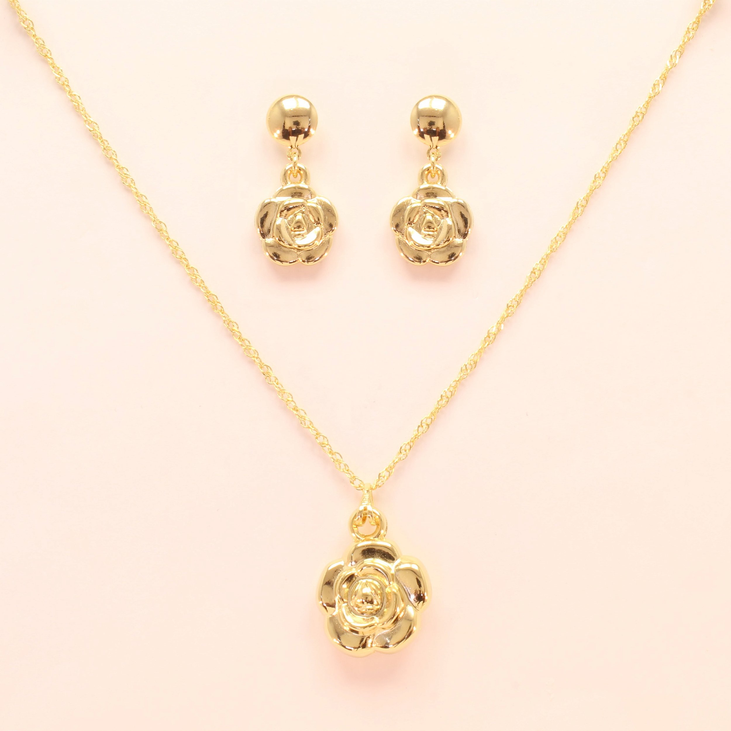 Conjunto de Flor Abaulada Folheado a Ouro 18k