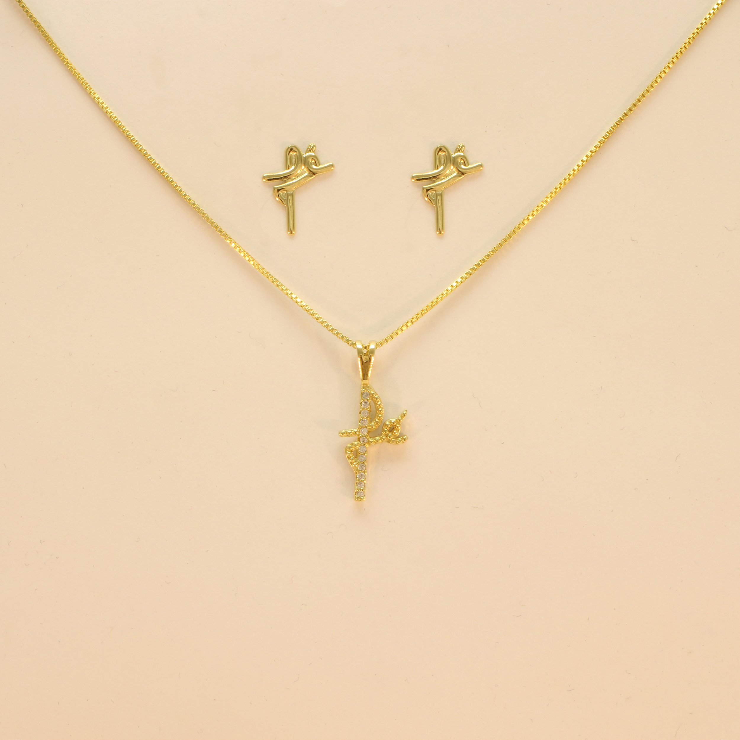 Conjunto Escrito Fé com Zircônia Folheado a Ouro 18k
