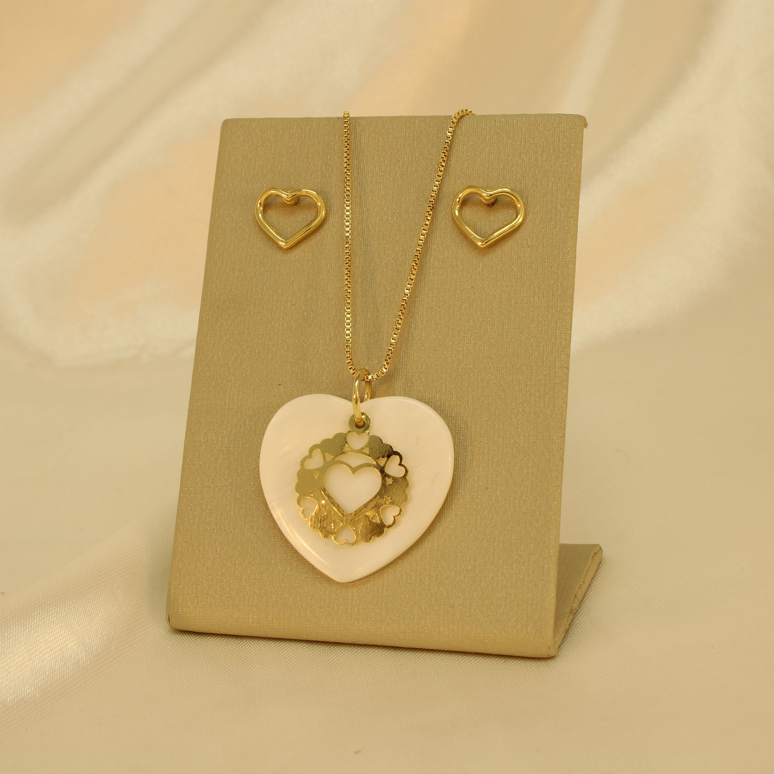 Conjunto com Design de Coração Folheado a Ouro 18k