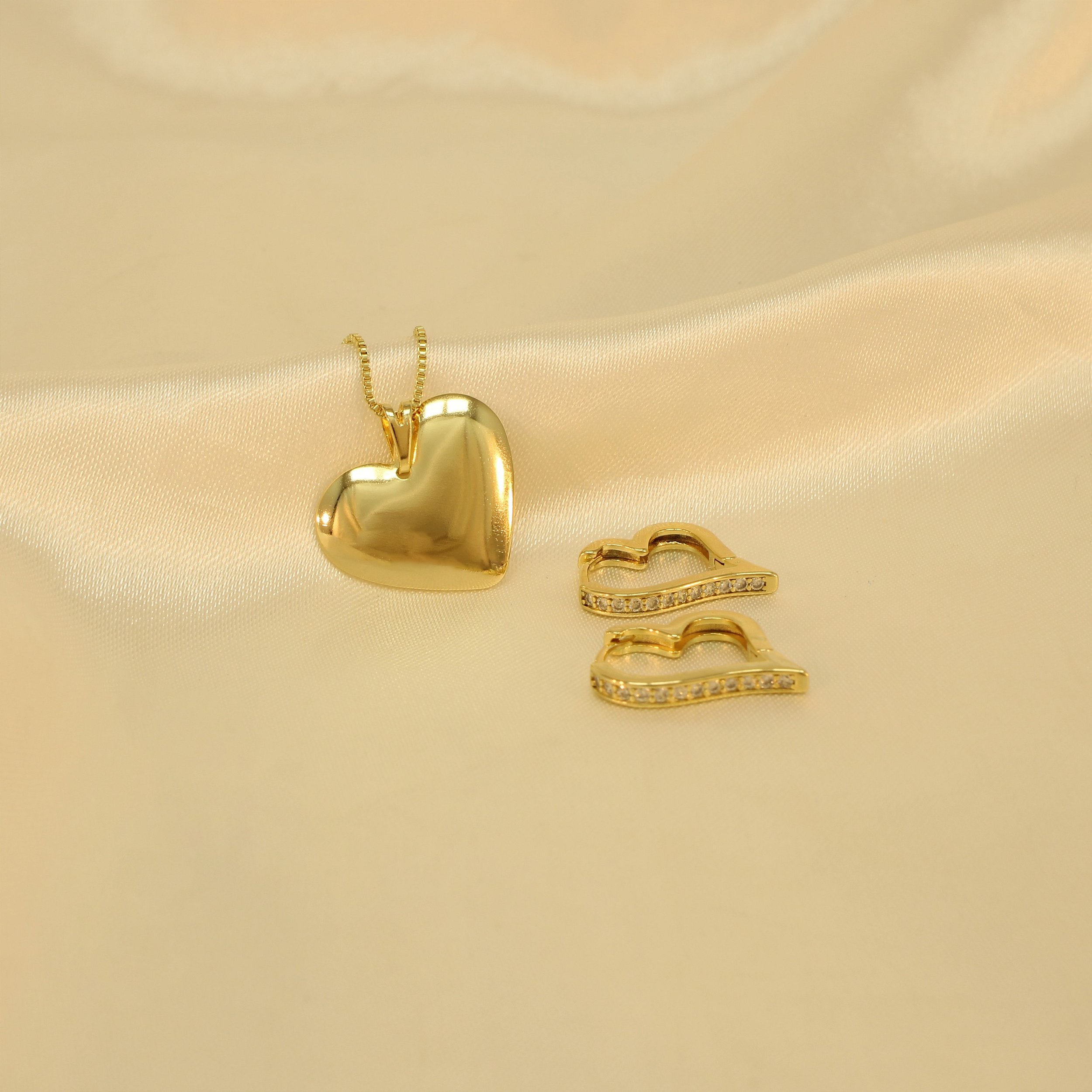 Conjunto de Coração Polido e Argola Folheado a Ouro 18k