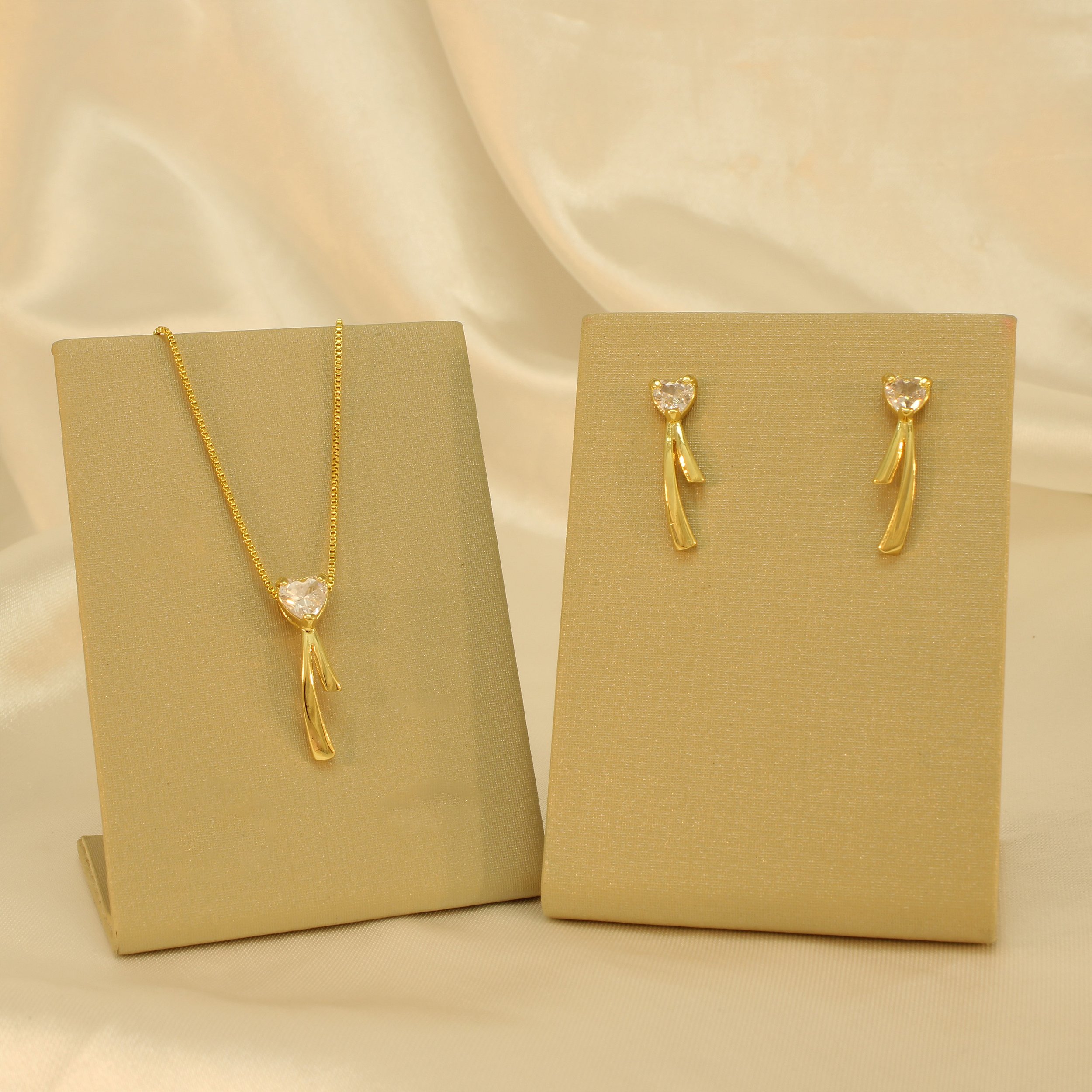 Conjunto de Coração com Zircônia Cristal Folheado a Ouro 18k