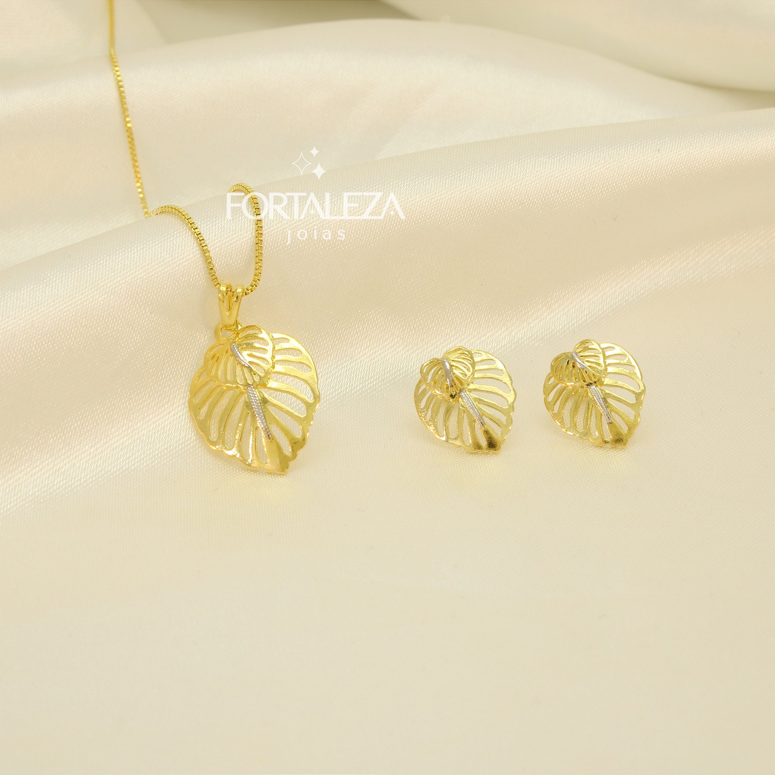 Conjunto com Design de Folha Banhado a Ouro 18k e Ródio