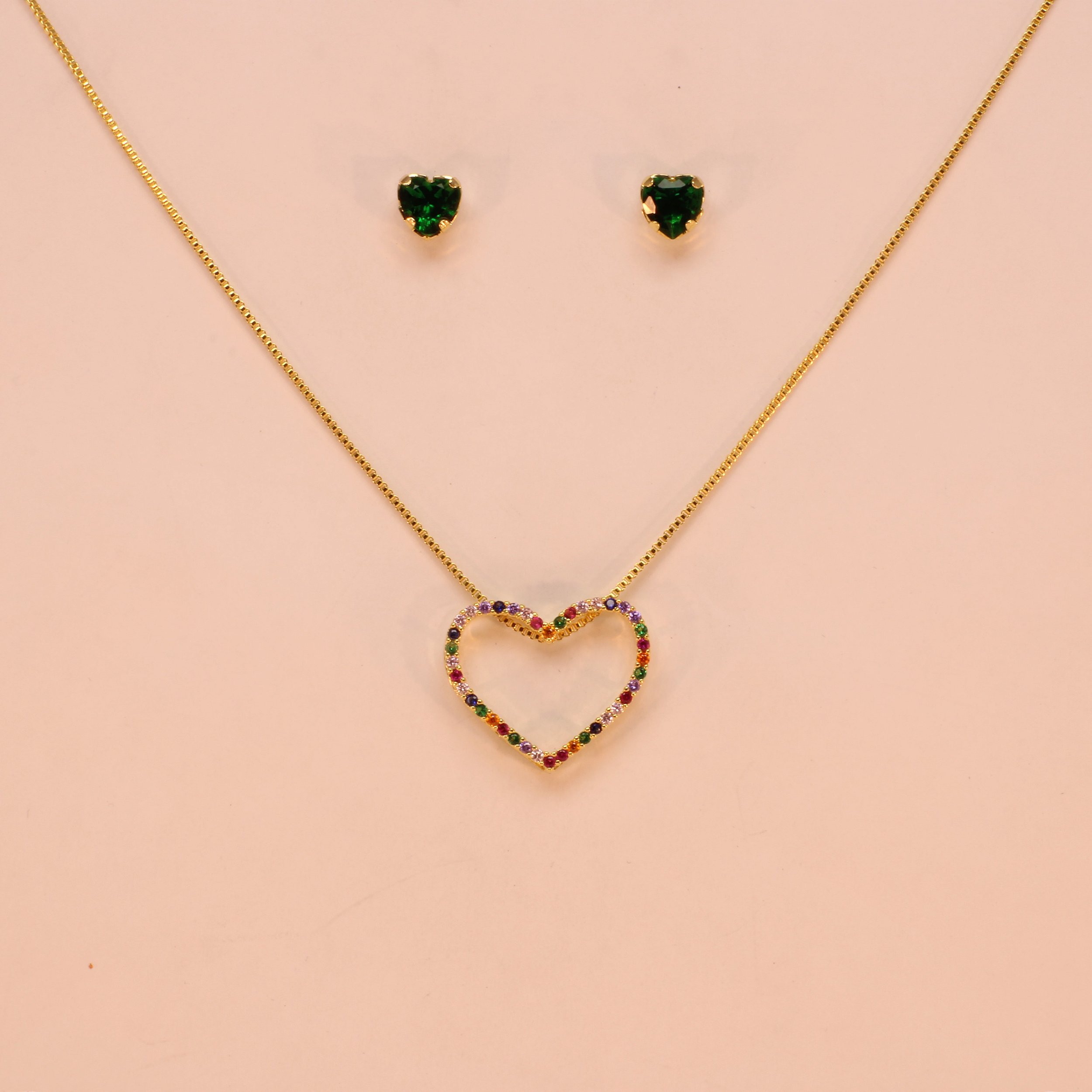 Conjunto de Coração Cravejado Folheado a Ouro 18k