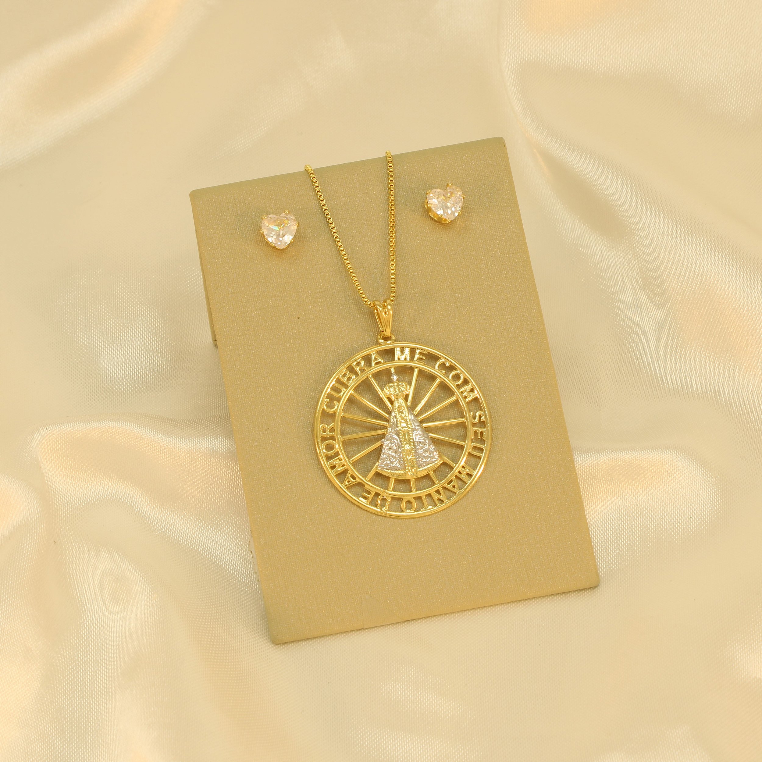Conjunto Nossa Senhora Aparecida Folheado a Ródio e Ouro 18k