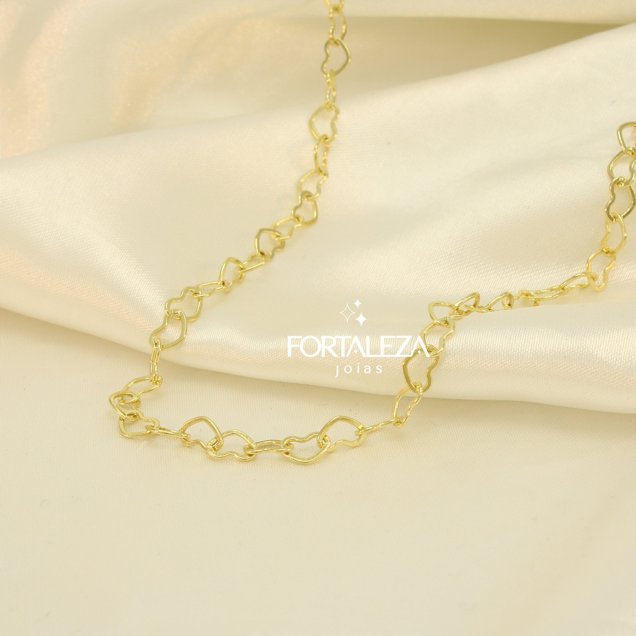 Corrente com Elos de Coração Banhado a Ouro 18k