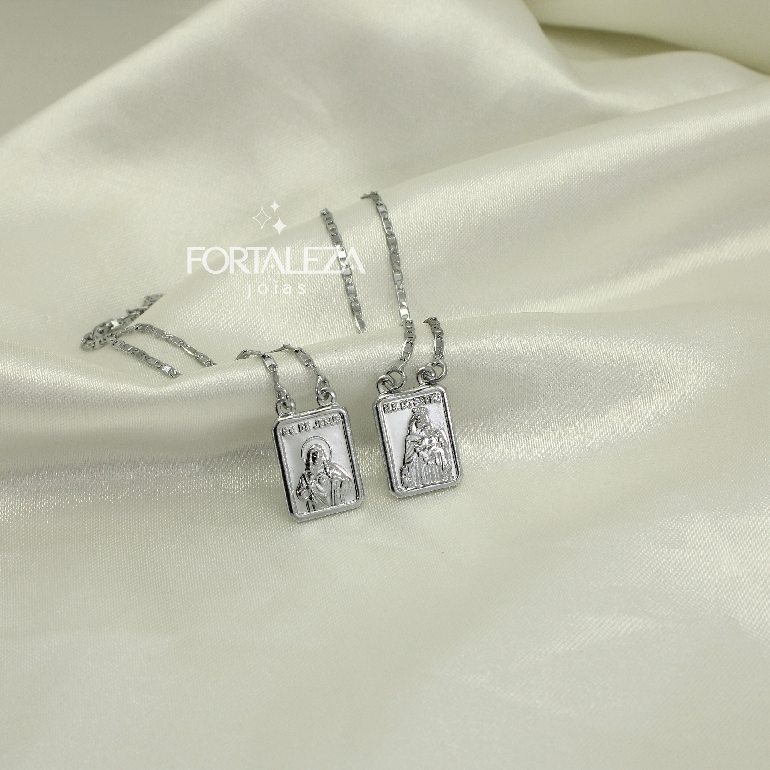 Escapulário Nossa Senhora do Carmo Banhado a Ouro Branco