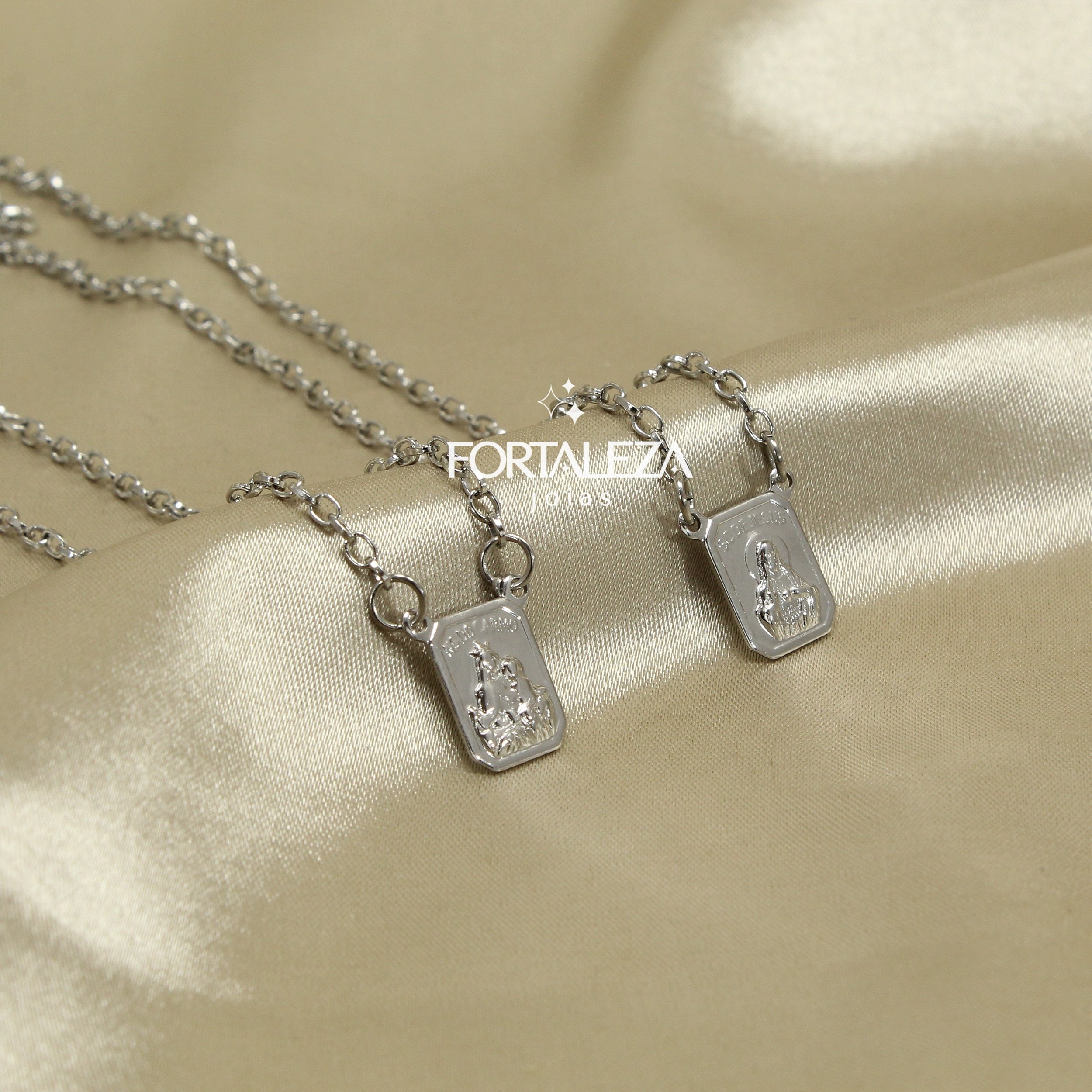 Escapulário Nossa Senhora do Carmo Corrente Portuguesa em Aço Inox