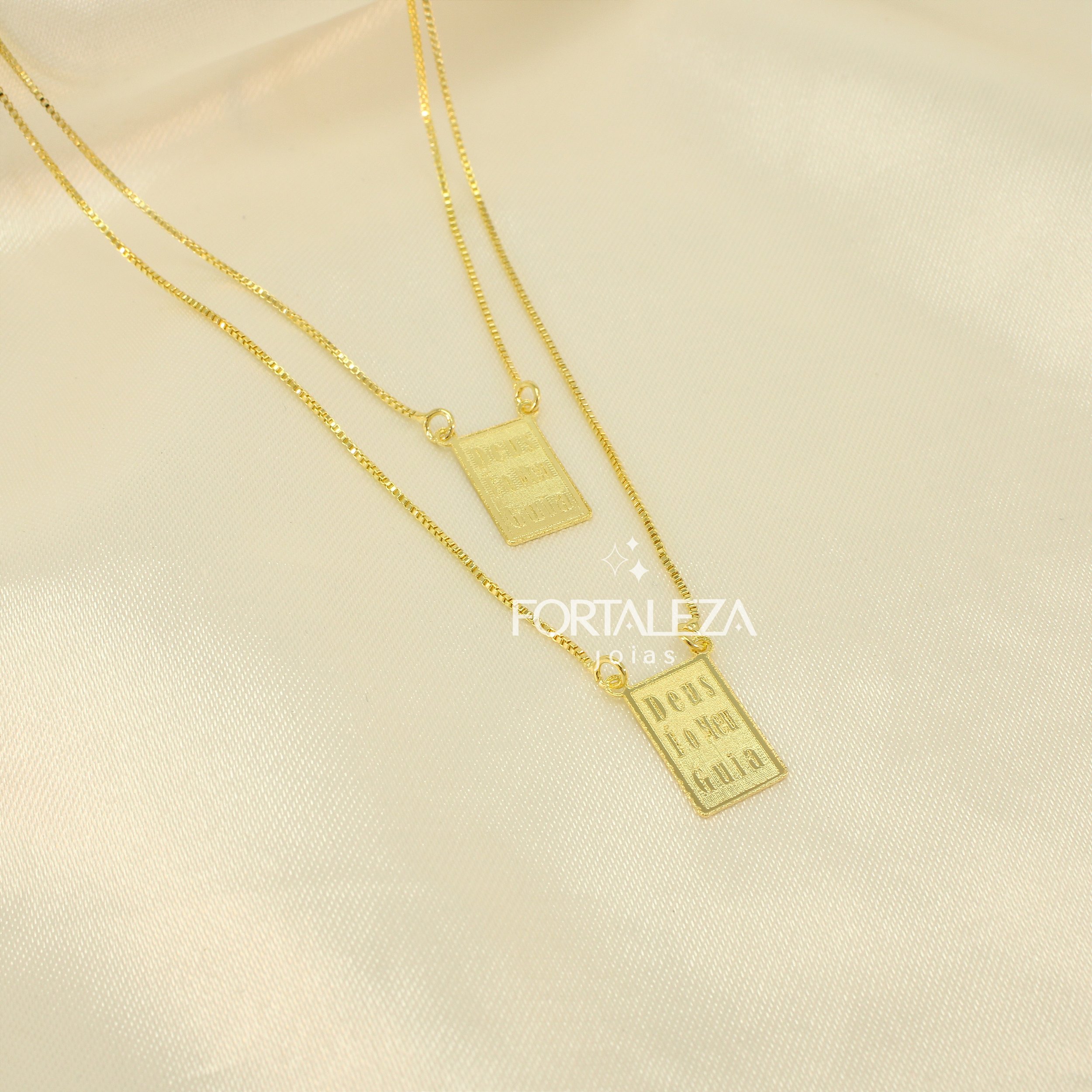 Escapulário Escrito Deus é o Meu Guia Banhado a Ouro 18k