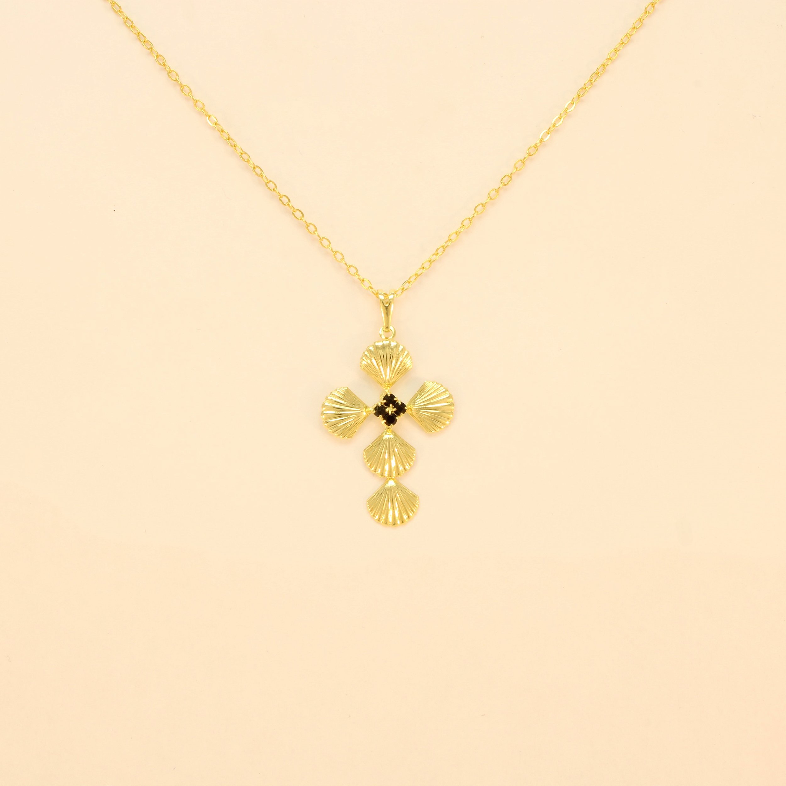 Gargantilha com Pingente de Cruz e Zircônia Banhado a Ouro 18k