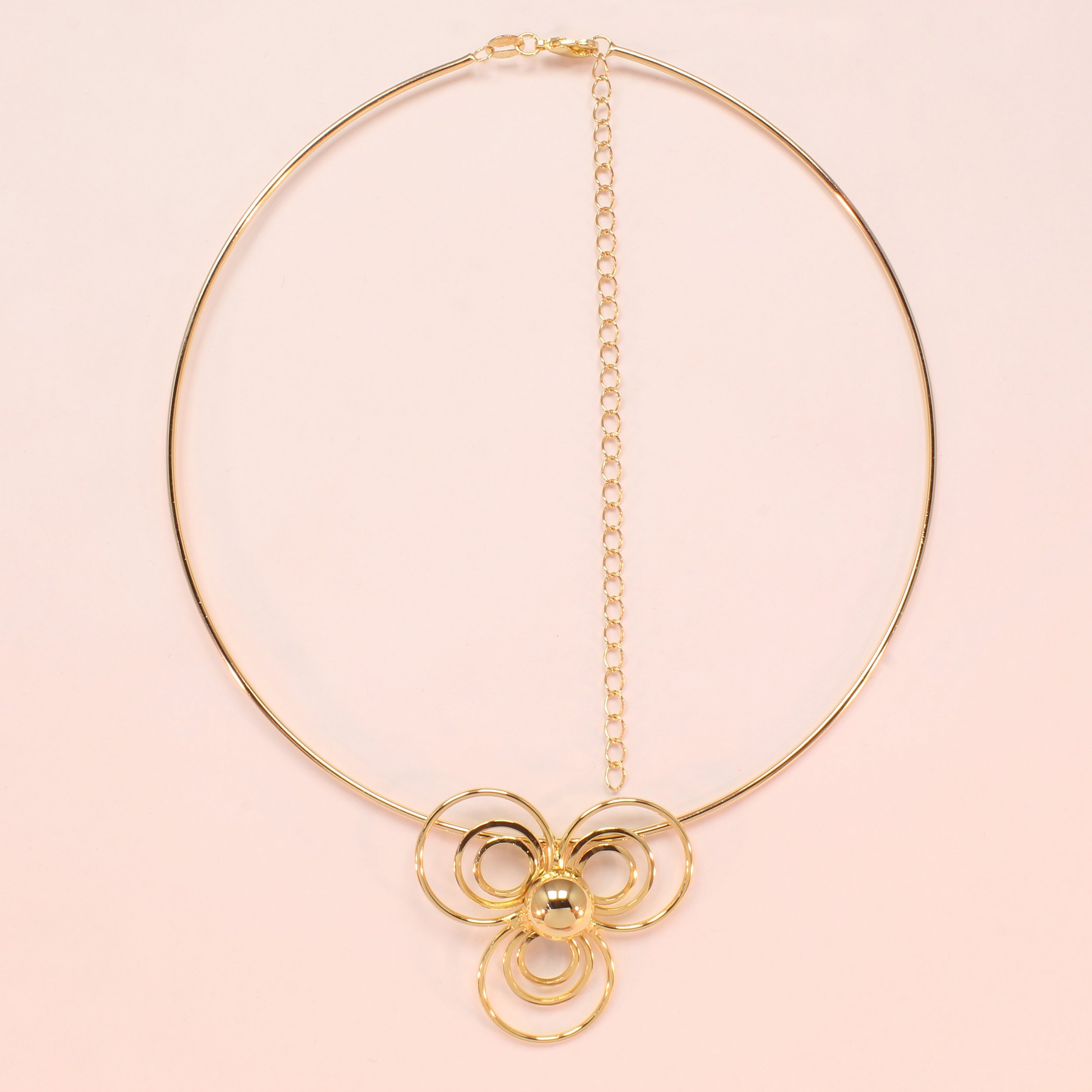 Choker de Aro Liso com Flor Vazada Folheado a Ouro 18k