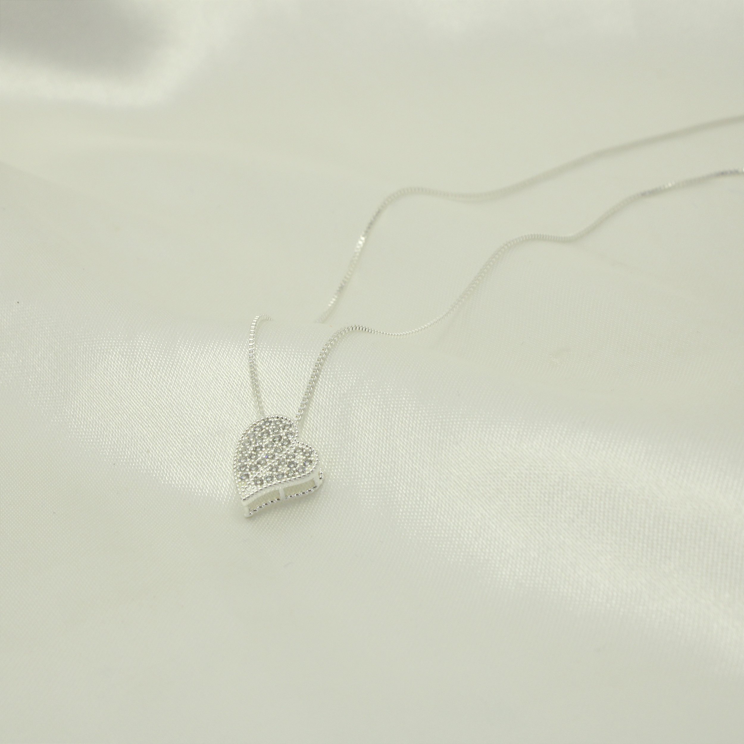 Gargantilha de Coração Cravejado em Zircônia Banhado a Prata