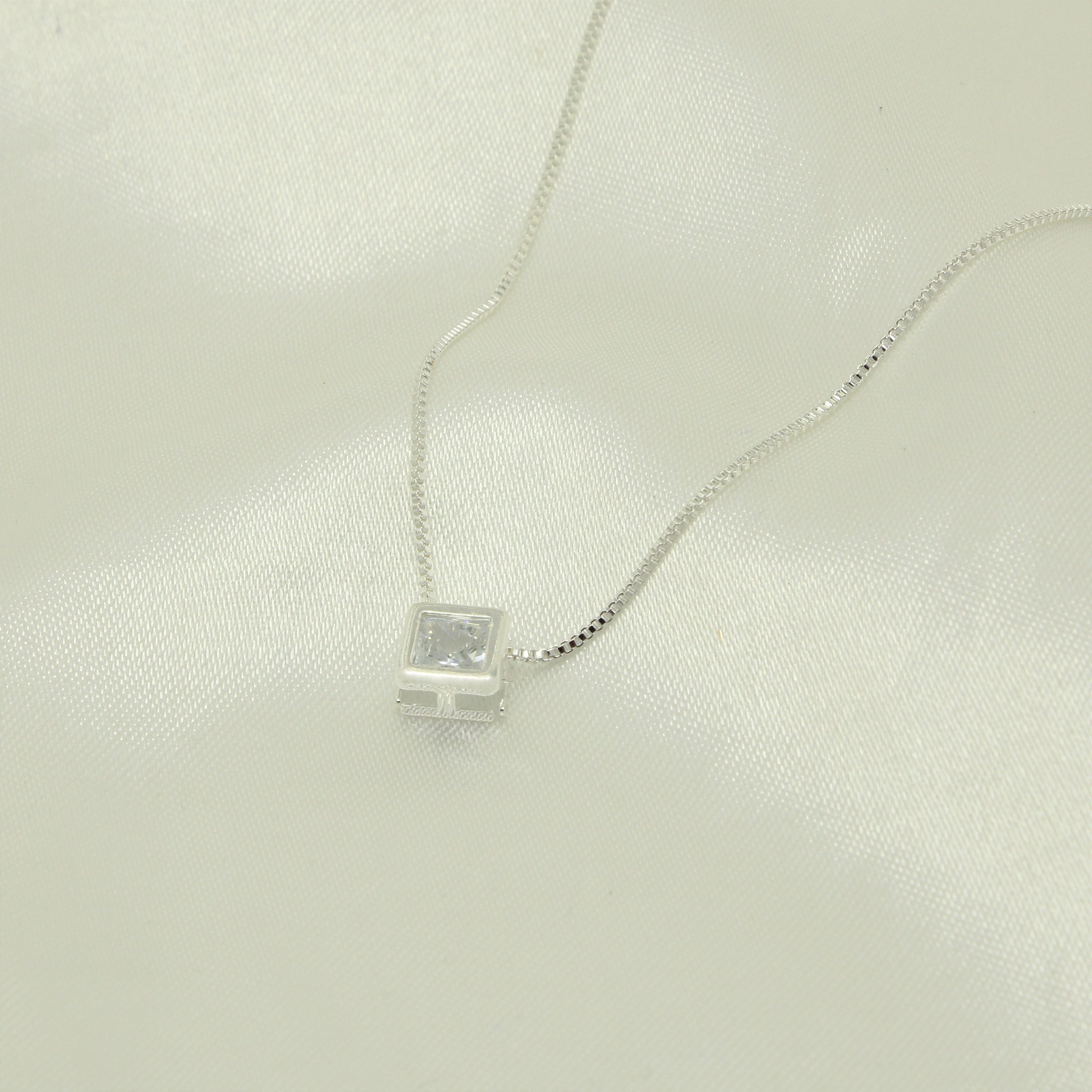 Gargantilha com Zircônia Cristal Quadrado Banhado a Prata