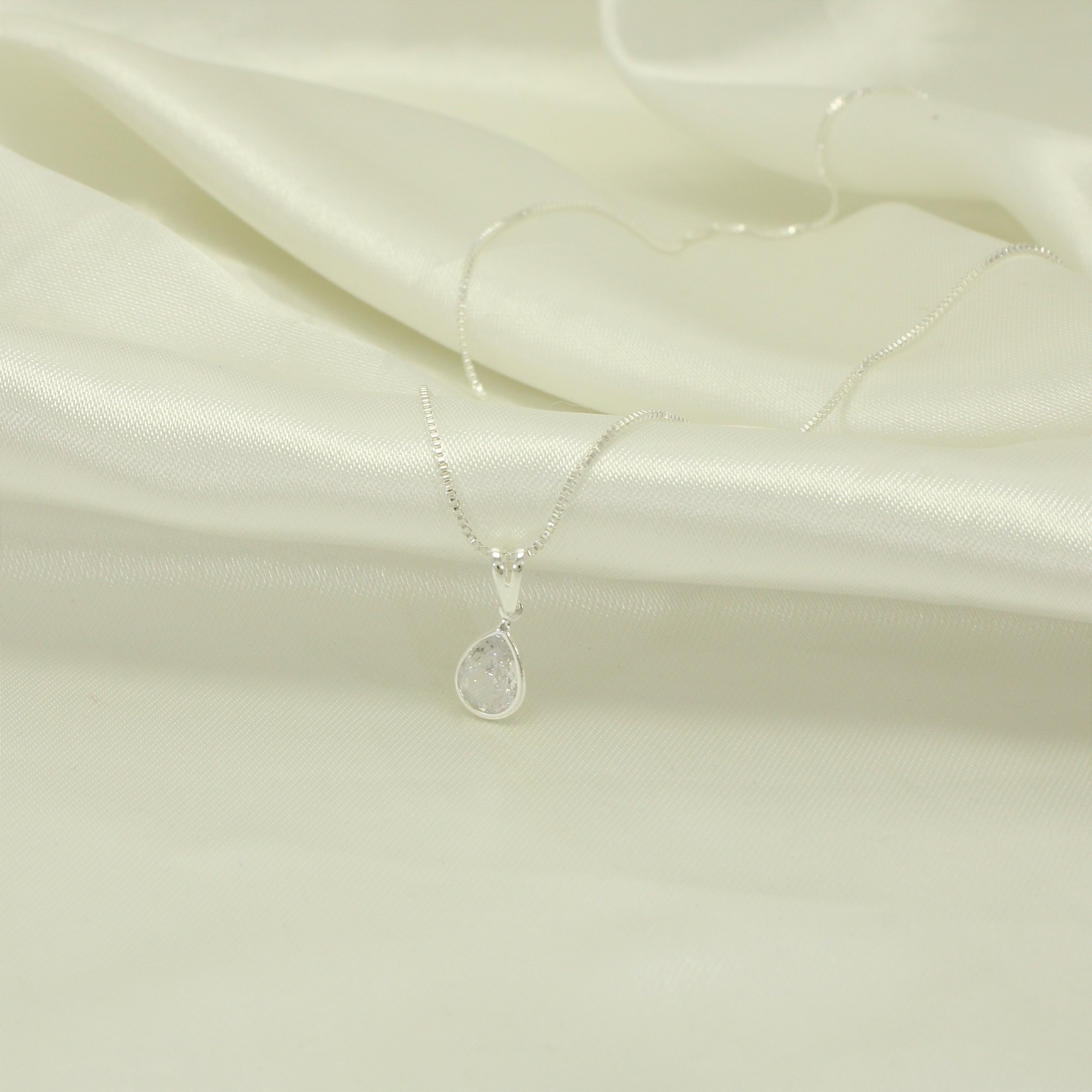 Gargantilha Gota com Zircônia Cristal Banhado a Prata