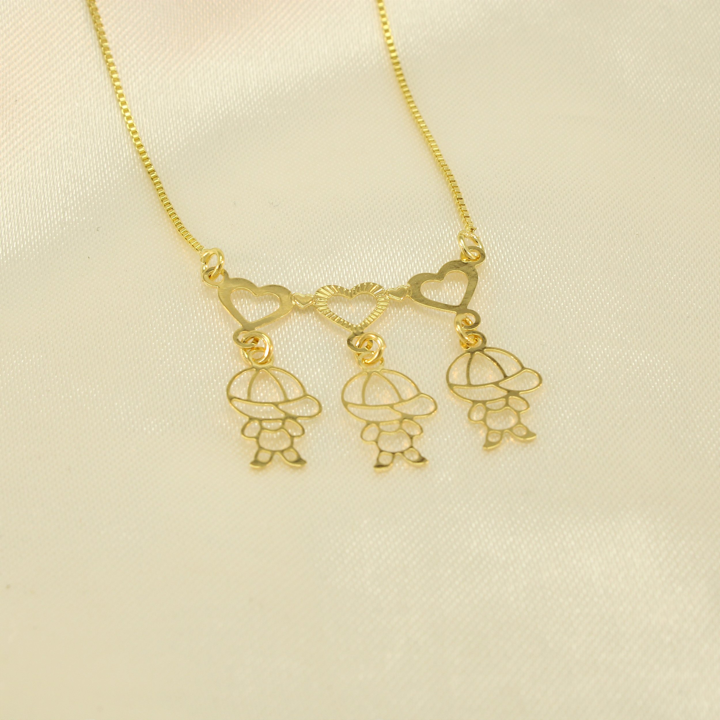 Gargantilha Três Meninos e Corações Banhado a Ouro 18k
