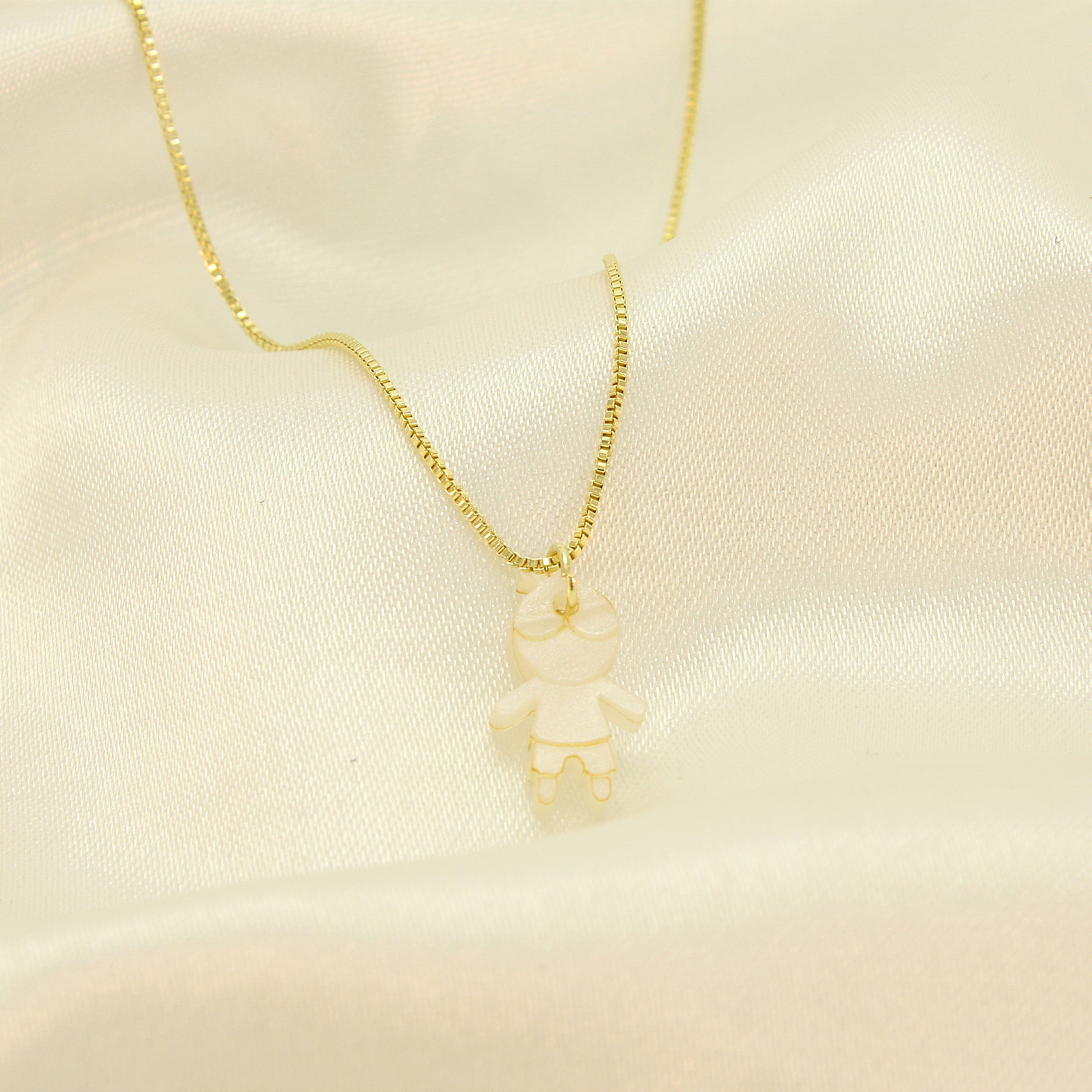 Gargantilha com Menino em Resina Banhado a Ouro 18k