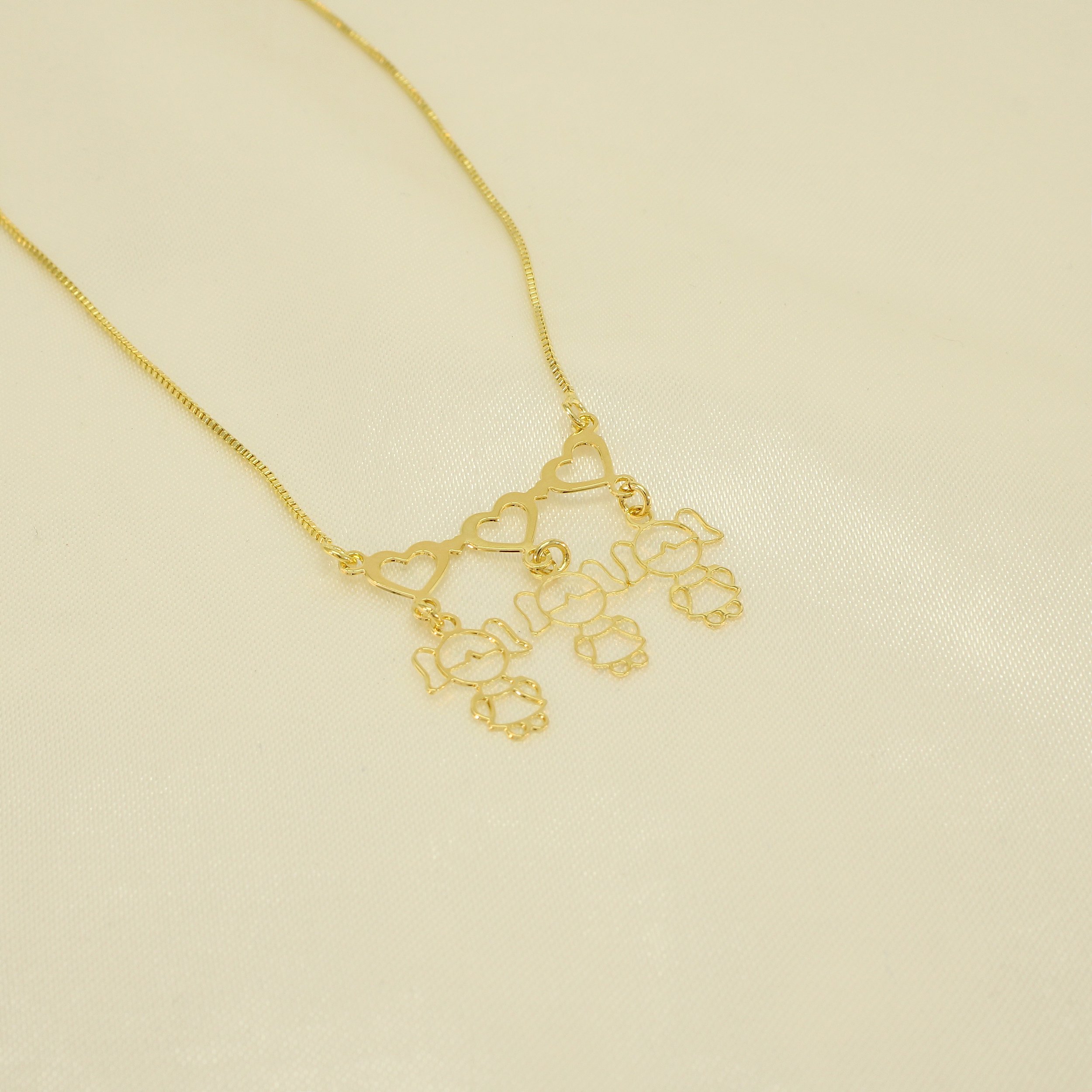 Gargantilha Três Meninas e Corações Banhado a Ouro 18k
