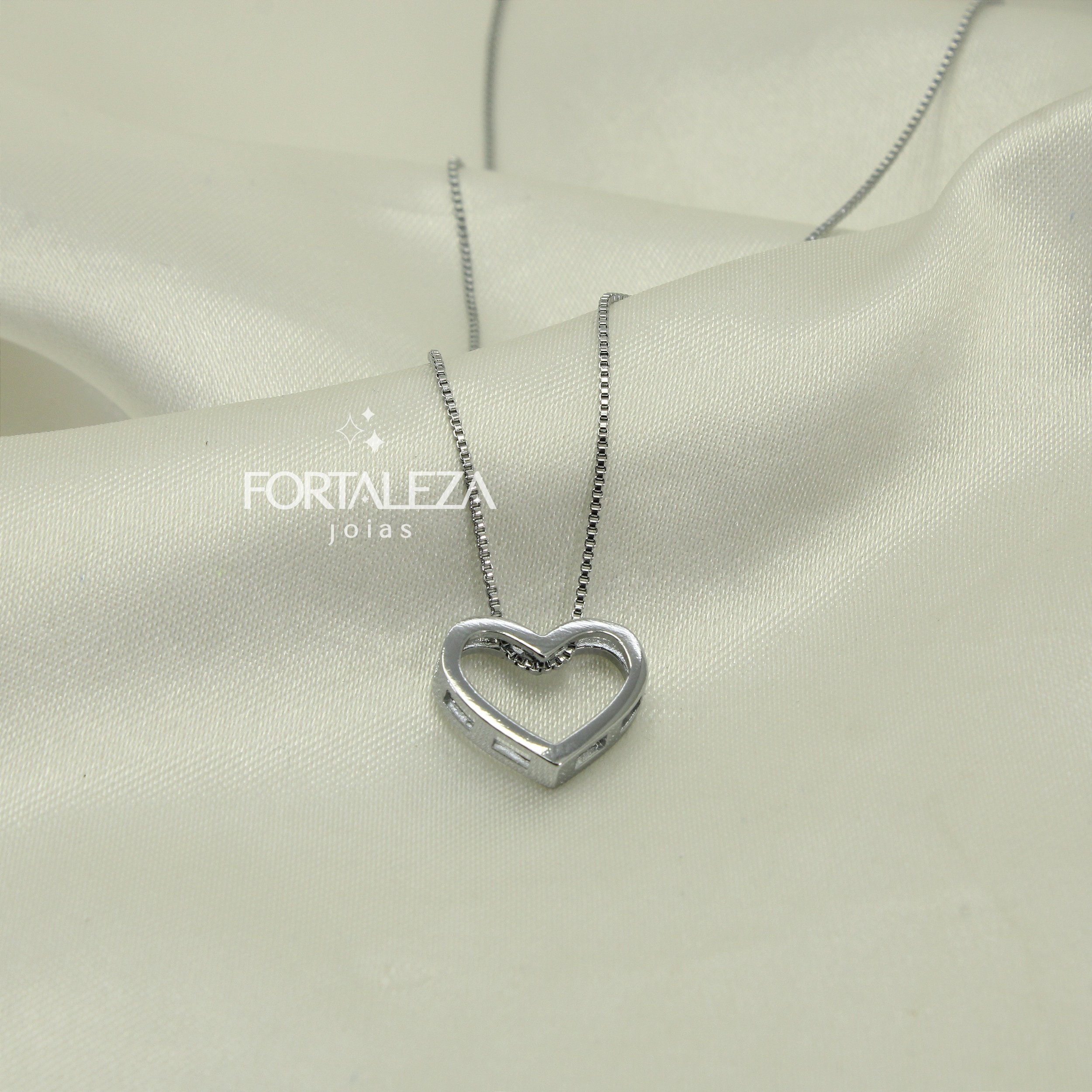 Gargantilha de Coração Vazado Banhado a Ouro Branco