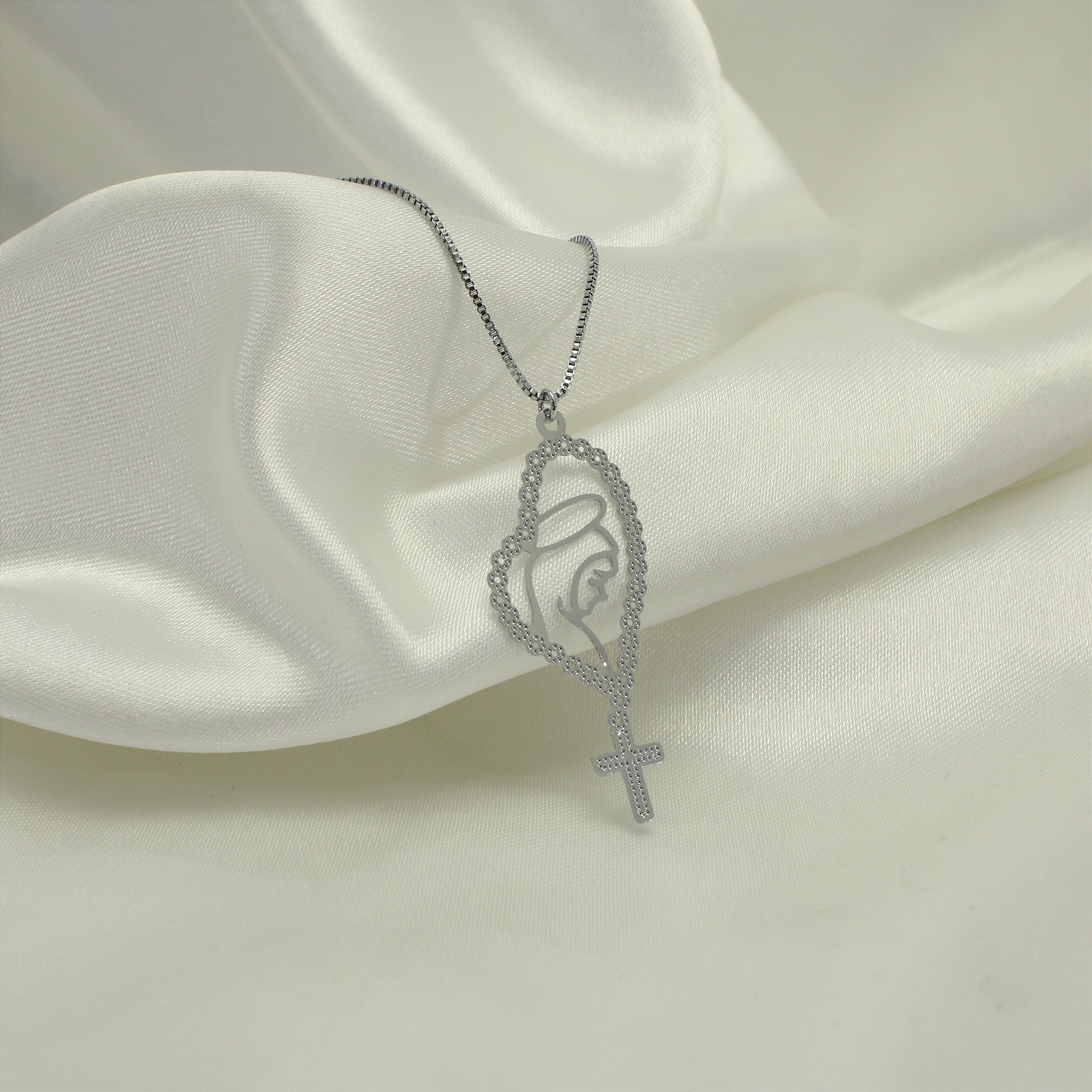 Gargantilha Virgem do Silêncio Banhado a Ouro Branco