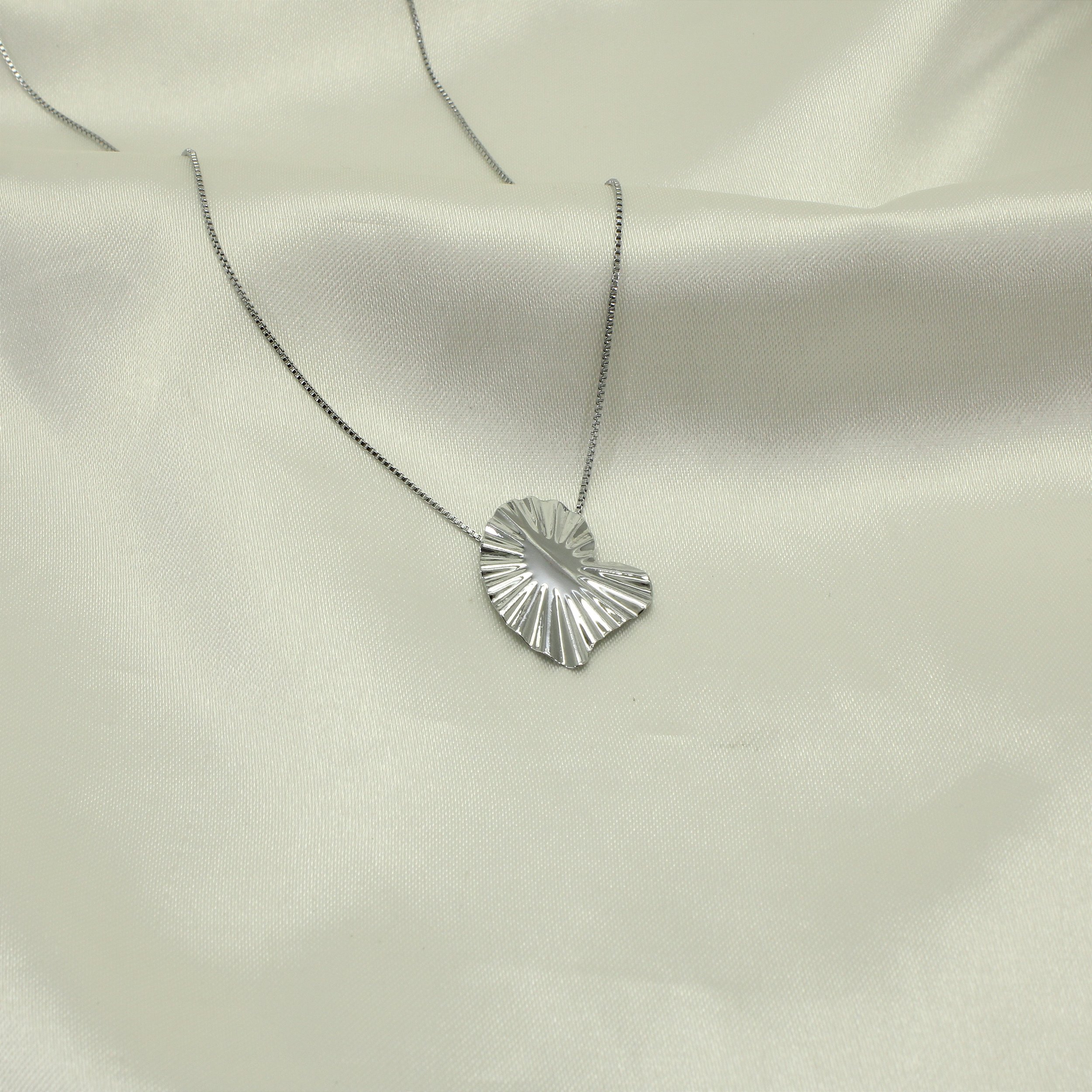 Gargantilha de Coração Orgânico Banhado a Ouro Branco